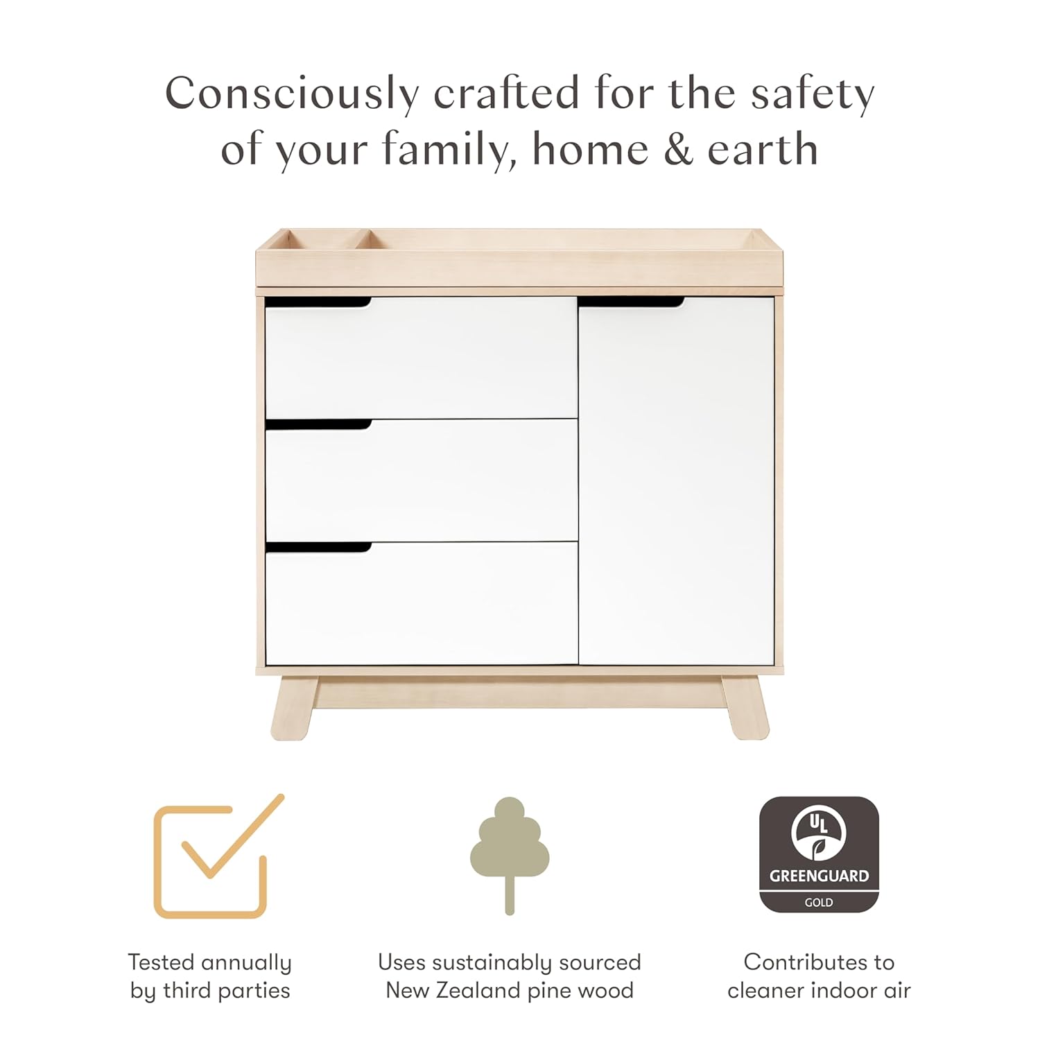 Babyletto Hudson 3-Drawer Changer Dresser with Removable Changing Tray in Washed Natural and White, Greenguard Gold Certified