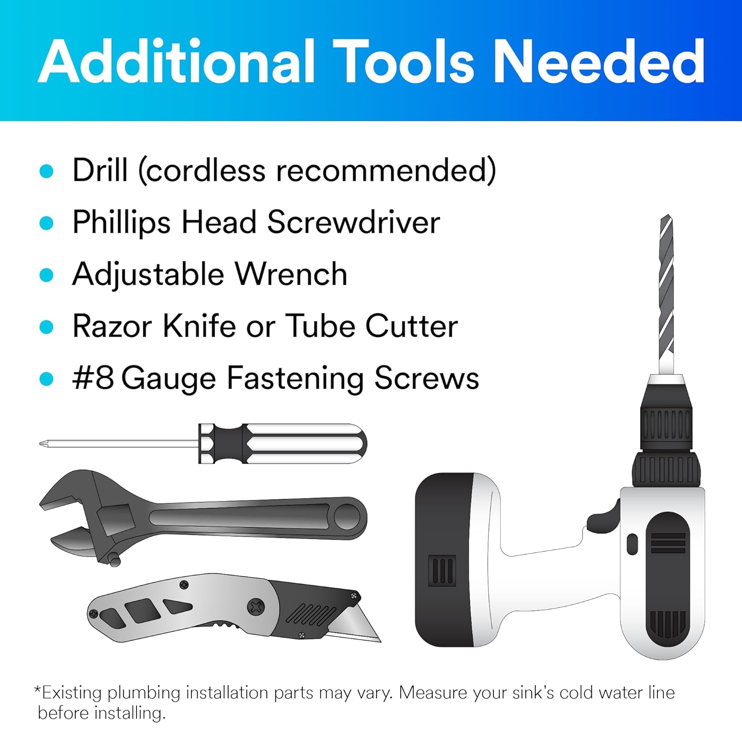 - Installation Type : Under Sink in Cold Water Line, to Dedicated Faucet (Faucet Not Included)
