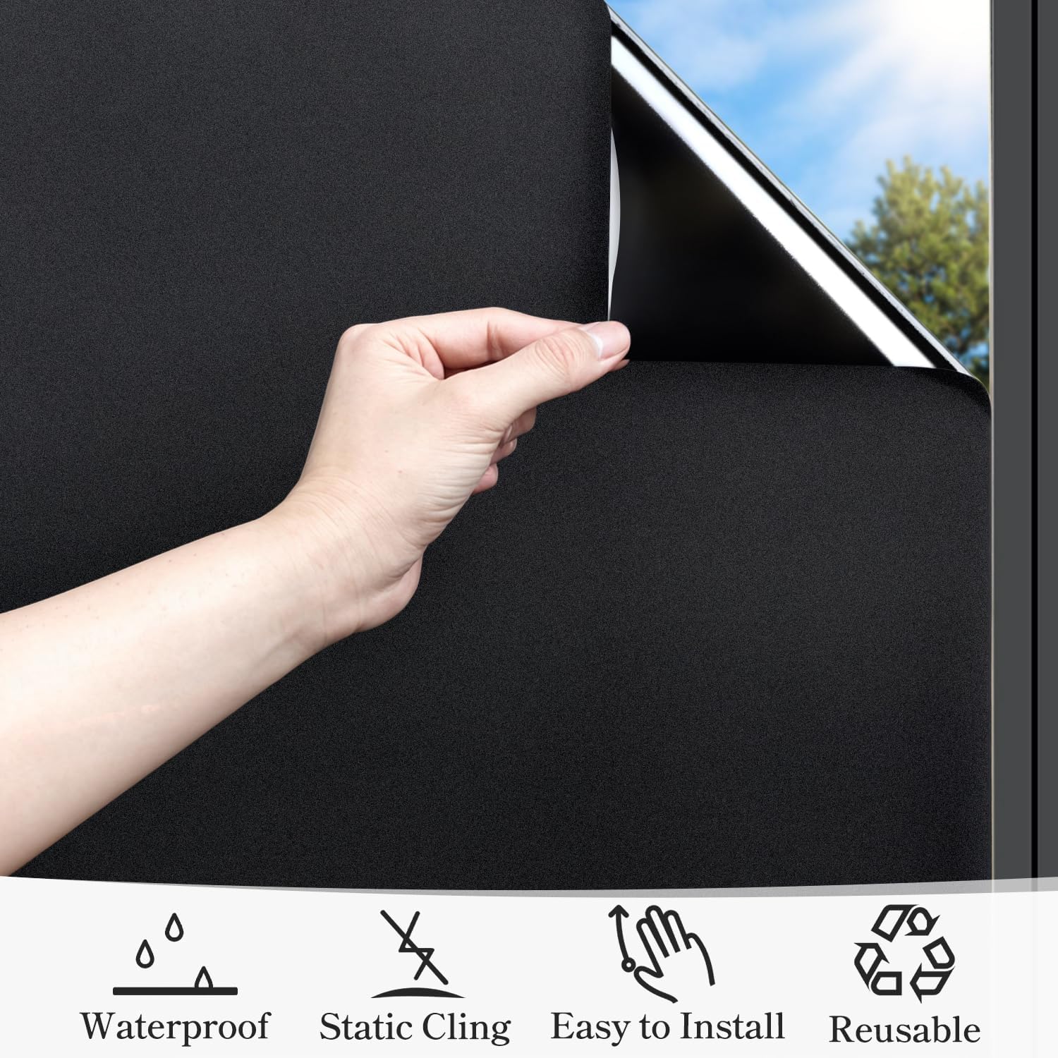 DUOFIRE Blackout Window Film Completely Light Blocking Privacy Window Film Room Darkening Frosted Tint Films for Day Sleep, Non Adhesive Static Cling Films DT-C009 (35.4 x 78.7 Inch)