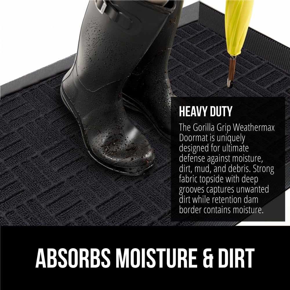 - THE ORIGINAL WEATHERMAX ALL SEASON DOORMAT: Gorilla Grip's Original WeatherMax doormat is built tough with a heavy duty, yet soft and flexible construction; deep grooves, beveled rubber border and retention dam help capture dirt, debris and moisture