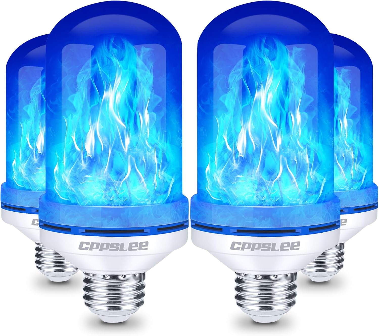 CPPSLEE Upgraded LED Flame Light Bulbs, 4 Modes Flickering Light Bulbs, E26 Base Fire Flame Bulb for Halloween Decorations Outdoor, Christmas Lights Patio Indoor Home Decor (Blue, 4 Pack)