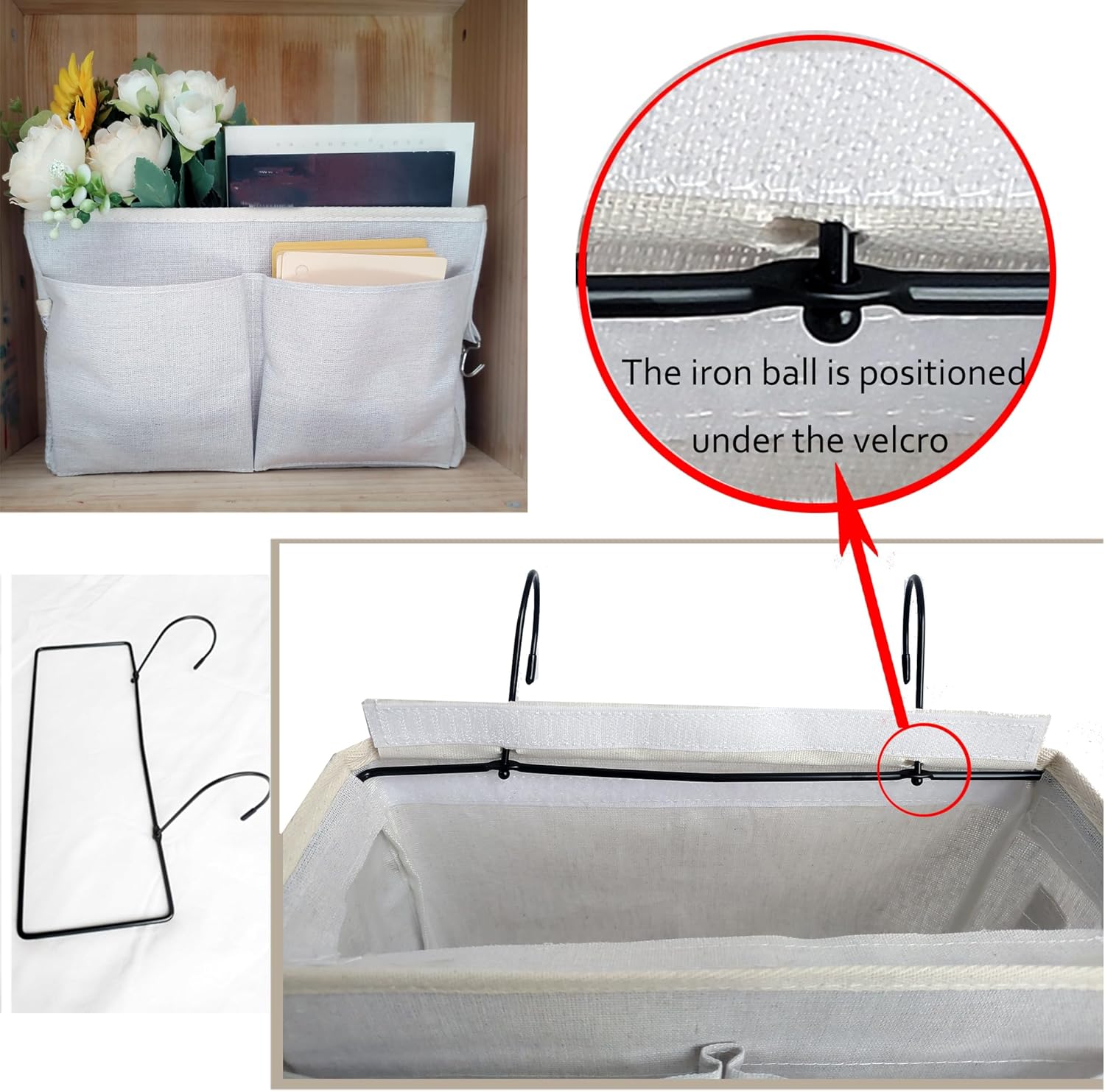 - ăProduct AdvantagesăThe top of our bedside organizer bag is designed with full wrapping around the top, the iron frame is firmly fixed in the inner side of the Velcro, which is not only more beautiful but also better stability, and equipped with a base plate, the whole is more solid, strong load-bearing capacity, not easy to be deformed.
