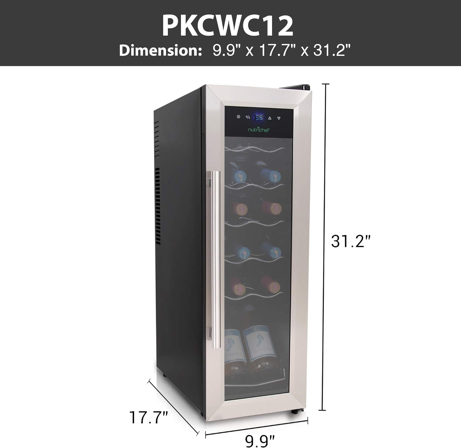 NutriChef PKCWC12 12 Bottle Cooler Refrigerator White and Red Countertop Chiller, Freestanding Compact Mini Wine Fridge with Digital Control, Stainless Steel