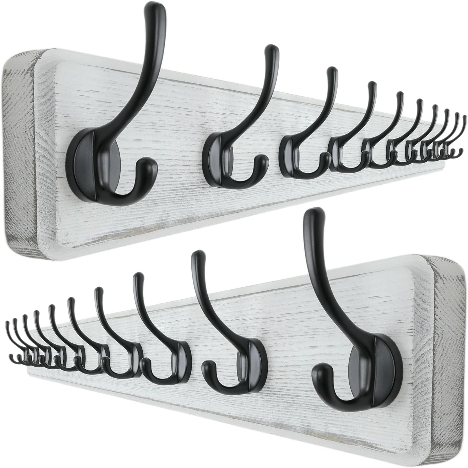 - 【STYLISH RUSTIC CHARM:】The wood hook rack features a unique, aged finish, exuding timeless rustic and farmhouse style. SIZES(INCH): 38-1/4 x 5-1/4 x 2-3/4; Including 2 x wooden coat racks wall mount with 10 dual hooks, mounting hardware, white & black color.
