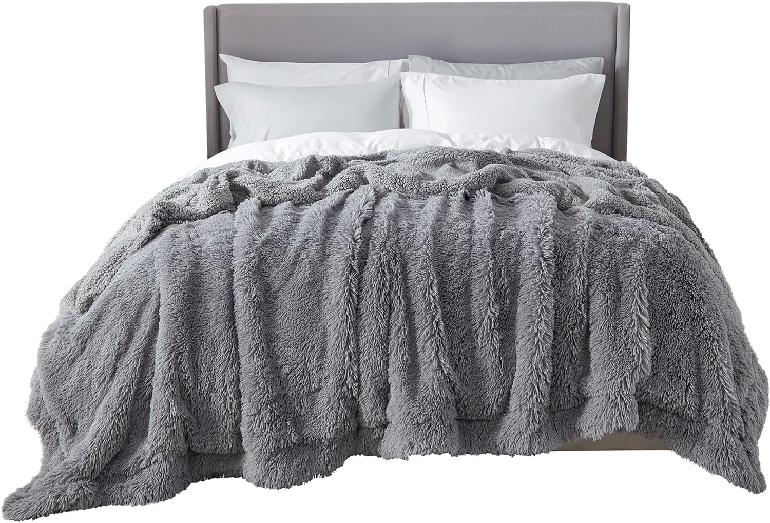 Bedsure GentleSoft Fluffy Grey King Size Blanket for Bed, Thick Soft Sherpa Faux Fur Fleece Bedding Fuzzy Plush Winter Warm Heavy Big Large King Blanket, Cozy Grey Gifts for Men Women, 108x90