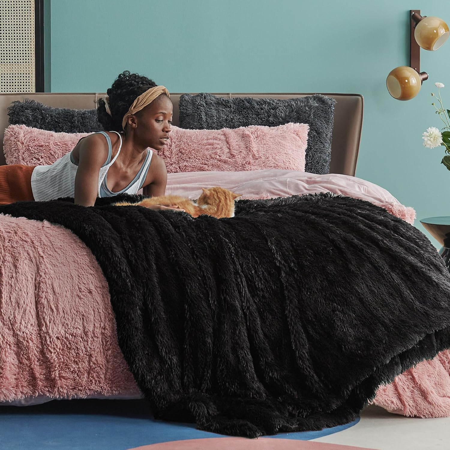 Bedsure GentleSoft Fluffy Black Blankets Queen Size for Bed, Thick Sherpa Faux Fur Fleece Fuzzy Plush Winter Warm Soft Full Queen Blankets, Bedroom Decor Black Gifts Cozy Gifts for Women Men, 90x90