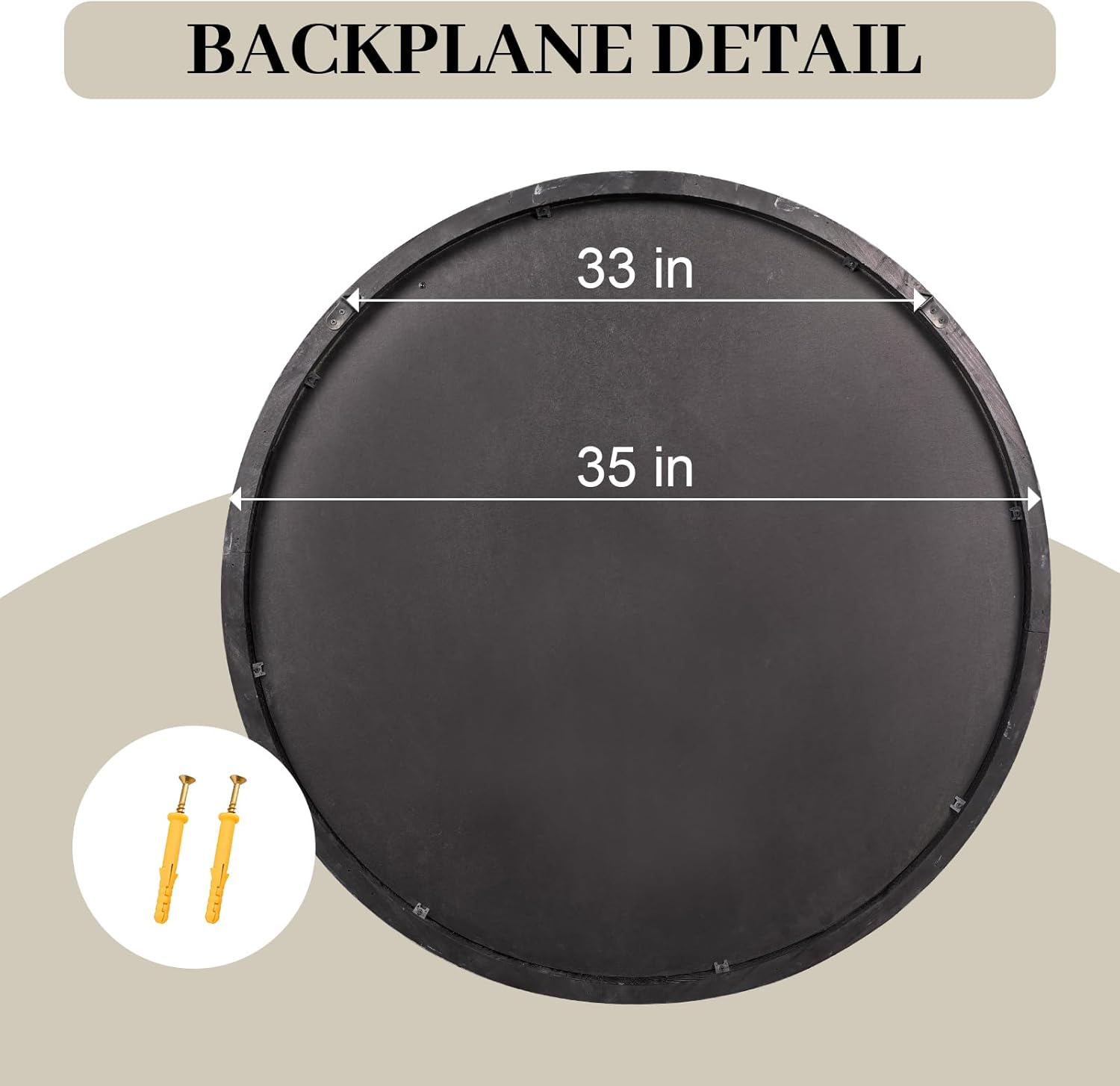 - NATURAL HOME DECOR: The element design of this round mirror 35 inches allows it to be integrated into any place and can add retro style to your home decoration. It can be used as a living room mirror, bedroom mirror, entryway mirror, or farmhouse wall decor. Provide a simple visual appeal to your room and be the perfect focal point for the entire room.