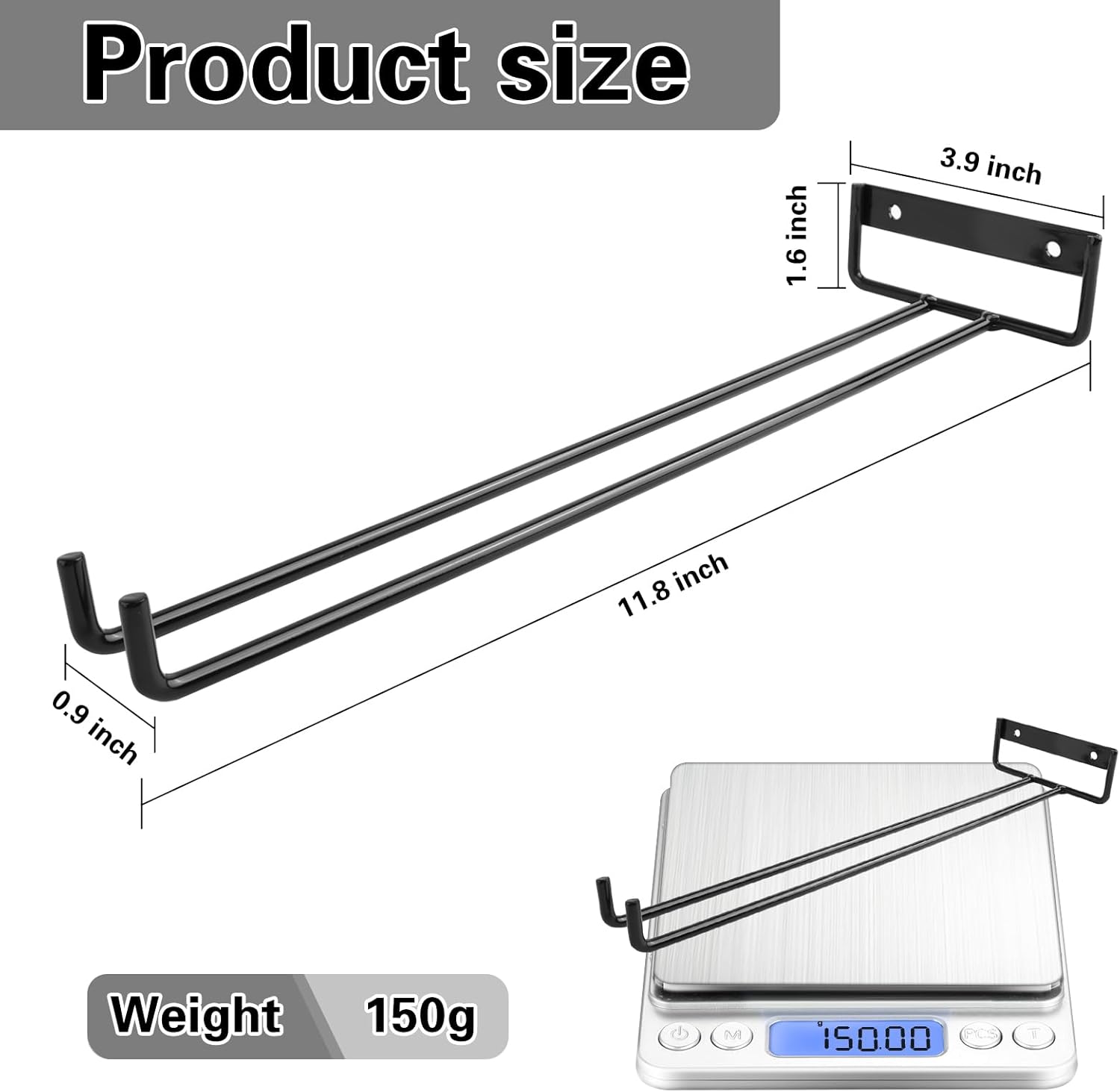 - 👍PERFECT SIZE - Single row, 4 piece per pack, 11.8 x 3.94 x 0.79 inch. You can get 11.8-Inch Wine Glass Racks. You will have enough room to store all your glassware for entertaining, but should you need more space you can install multiple units side by side for additional space.