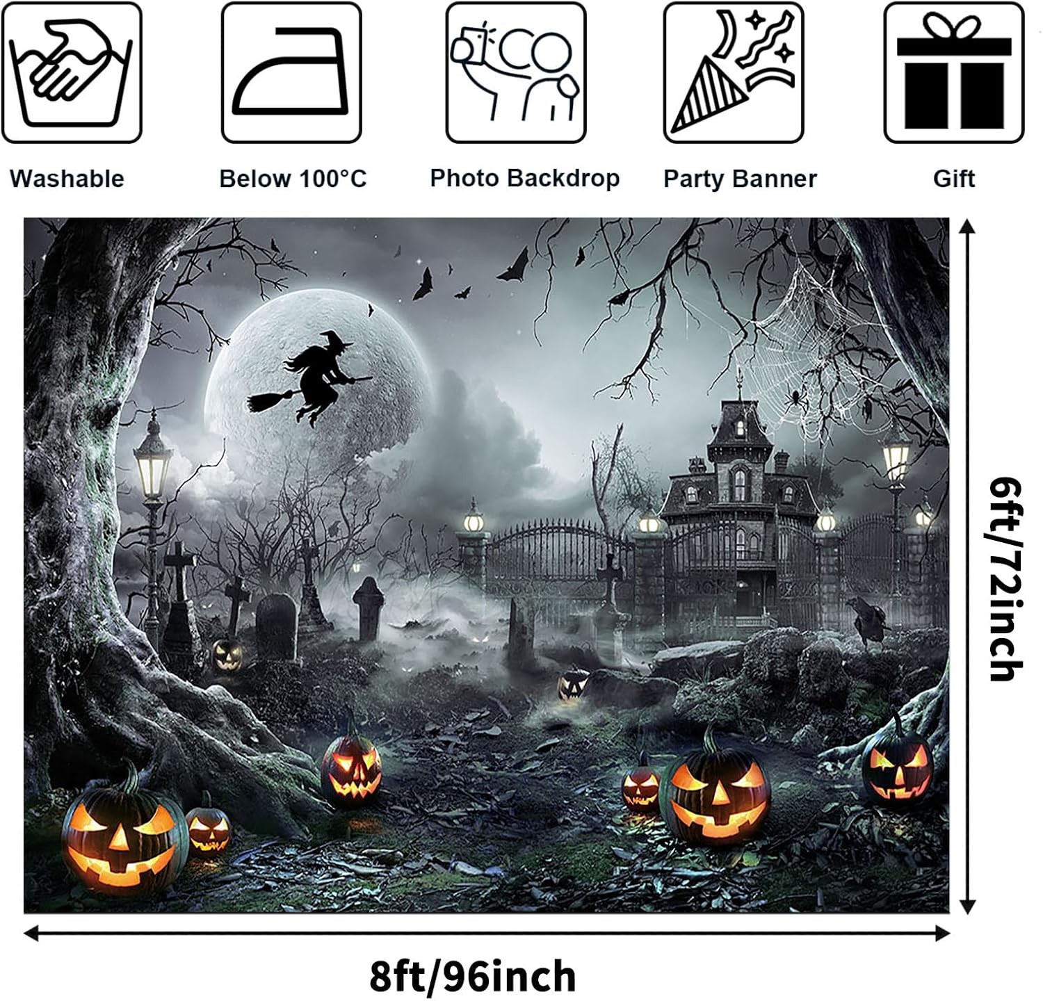 - [Widely Used]: This background can be used for Halloween atmosphere newborn photography, portrait photography, video shooting background, Halloween photography background, Halloween party decoration, Halloween themed family and friend photography background gifts, cake table banners, and wall decoration. It is suitable for indoor and outdoor Halloween event decoration. It can light up your Halloween activities and leave you with unforgettable Halloween memories!