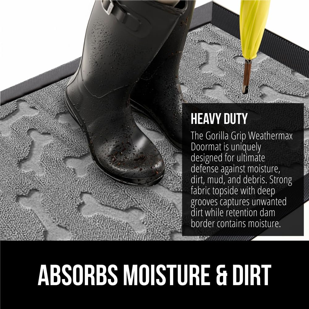 GORILLA GRIP 100% Waterproof All-Season WeatherMax Doormat 35x23, US Designed Natural Rubber, Stain and Fade Resistant, Low Profile Indoor Outdoor Door Mats, Easy Clean Patio Mat, Light Gray Bones