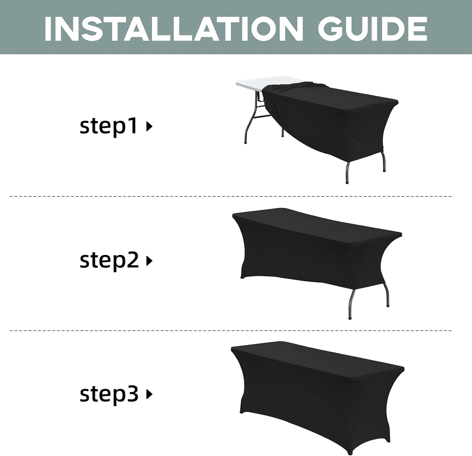 - [Easy To Set Up]: Our table cover is easy for you to set up,just wrap around your table, put 4 table legs into Elastic leg pockets,and ensuring that every part of the rectangular table is covered and spandex table cloth cover is displayed uniformly;It can be used for both indoors and outdoors