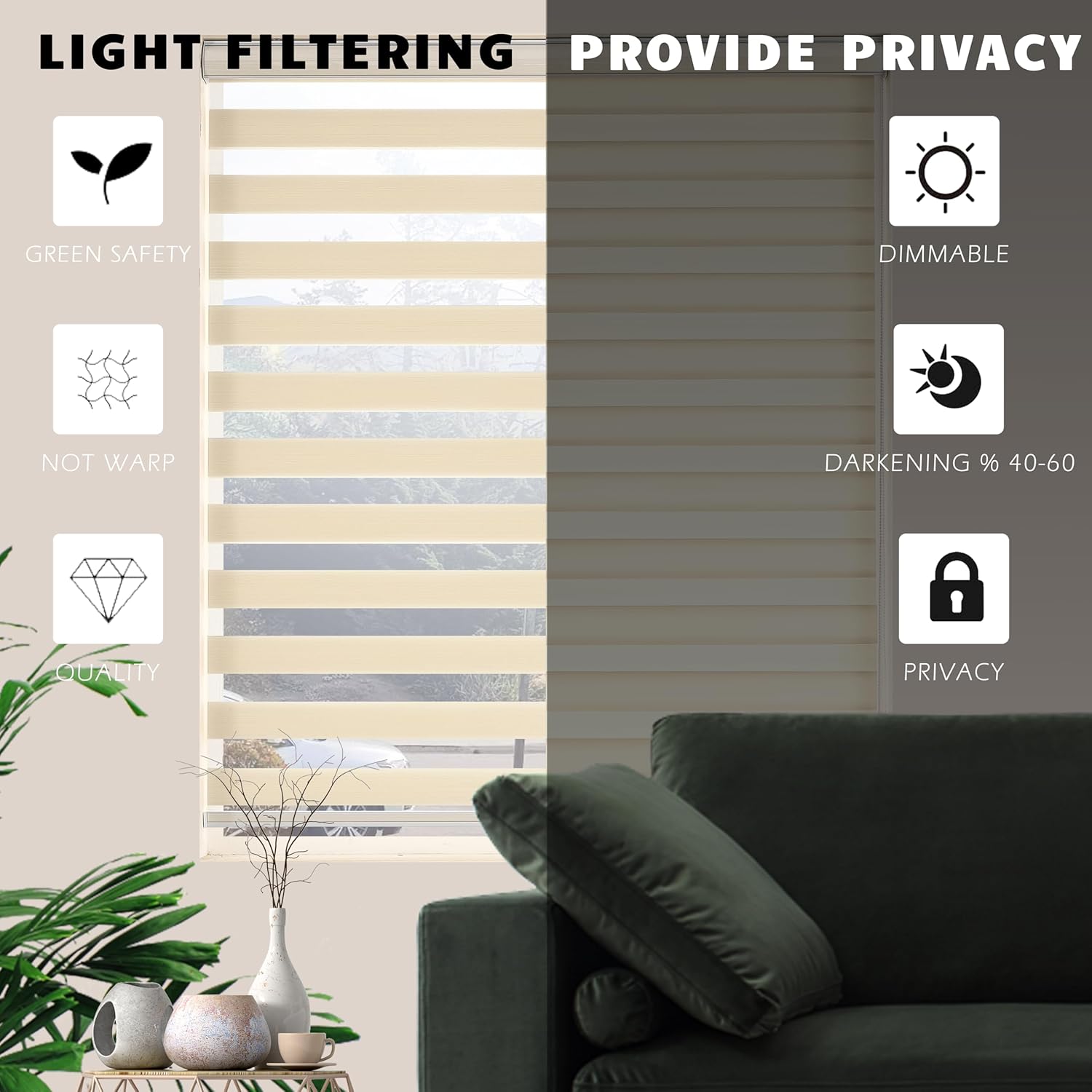 - Zebra Shades combine alternating sheer and solid fabric bands in a single shade. It can block light from entering and provide privacy. JIANGPIN TEXTILE window blinds help you decorate your space and enhance its appearance. Decorate your living room, dining room, kitchen, bedroom, bathroom, office, and commercial space.