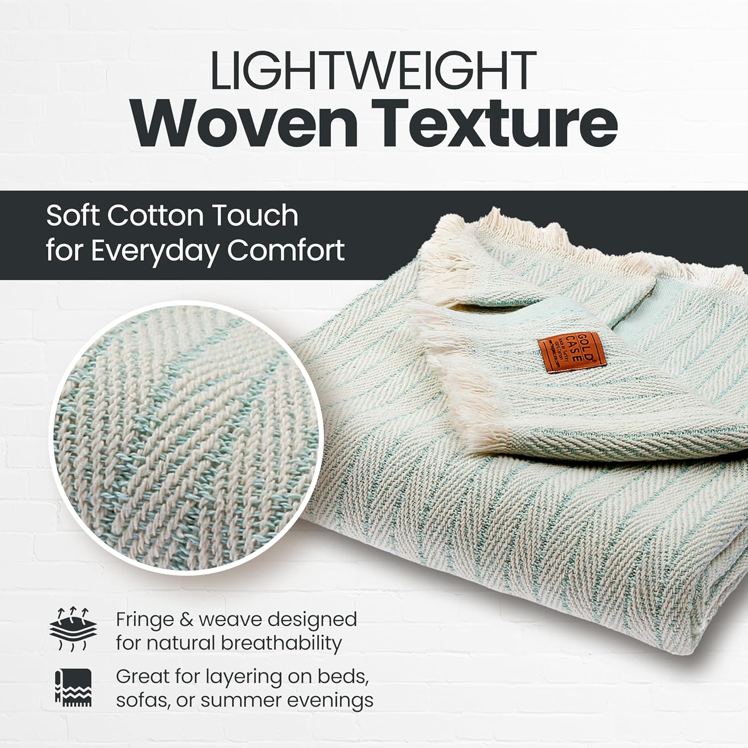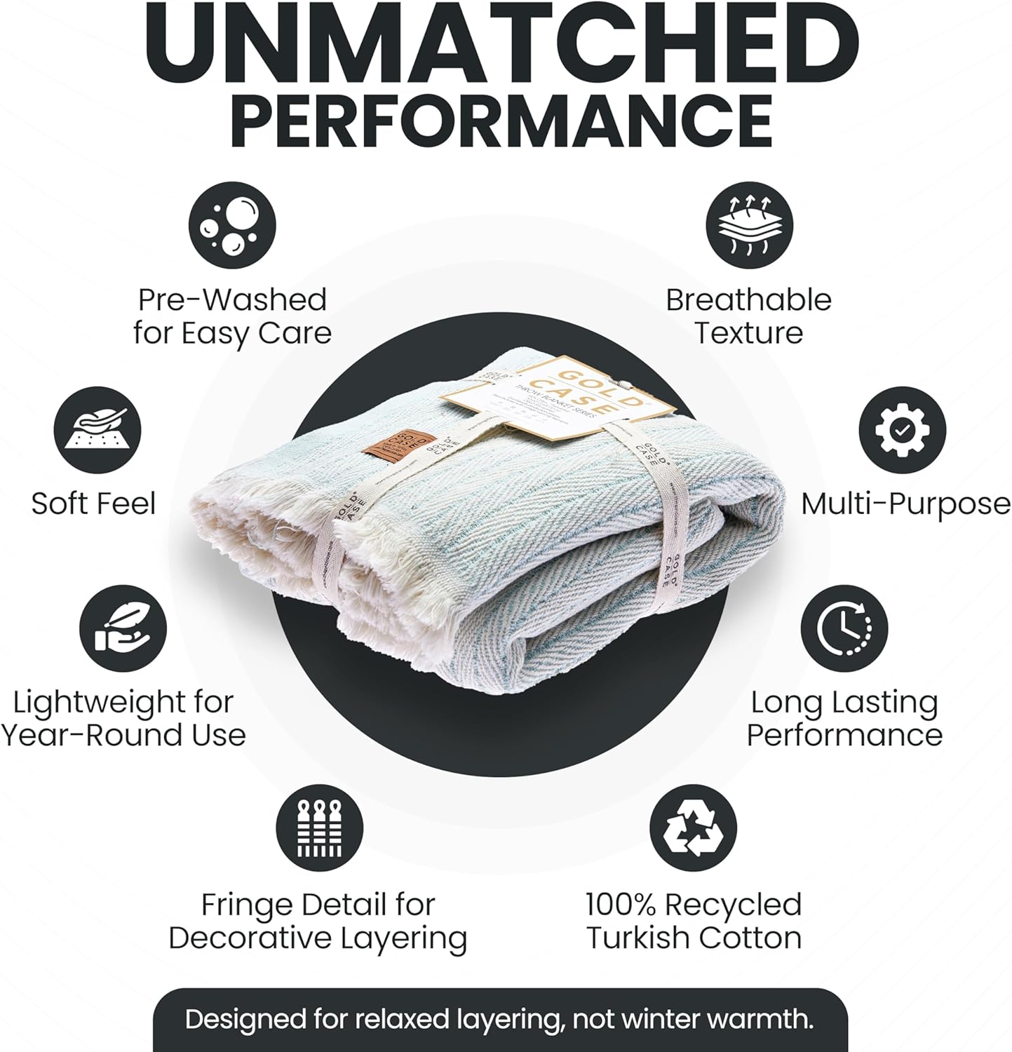 Gold Case Throw Blanket for Couch – 100% Recycled Turkish Cotton Blankets & Throws – Elegant Decorative Throw Blankets for Living Room Sofa – Woven Throws for Couch – Vintage Aqua– 50x60