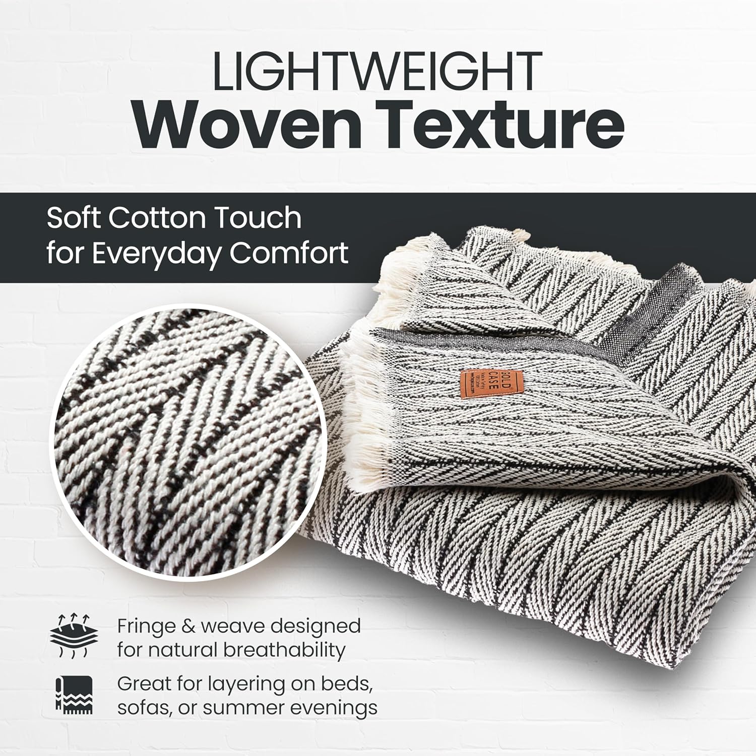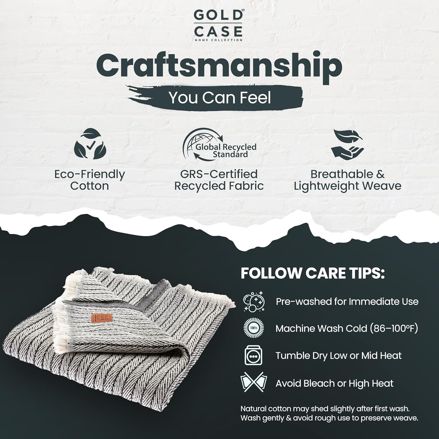 Gold Case Throw Blanket for Couch – 100% Recycled Turkish Cotton Blankets & Throws – Elegant Decorative Throw Blankets for Living Room Sofa – Woven Throws for Couch – Vintage Black – 60x80