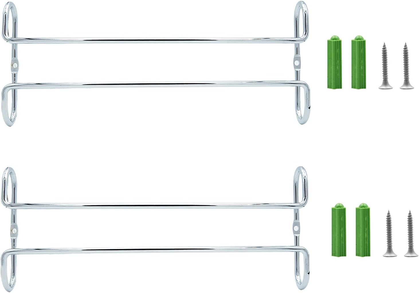 10 Inch Wine Glass Rack Under Cabinet Shelf Stemware Storage Hanging Hanger Organizer Glasses Holder with Drying Under Counter Metal for Kitchen and Bar Set of 2 Silver
