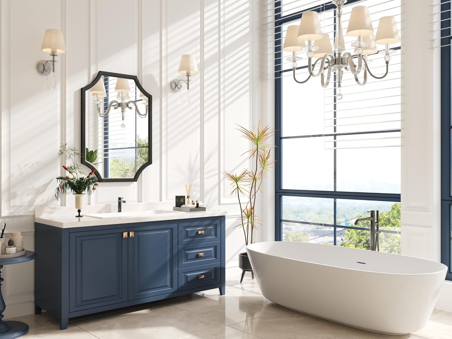 - SOPHISTICATED DESIGN: The mirror frame features an elegant scalloped corner shape. It's a traditional mirror style, but it also gives the mirror a simple and modern look, and it can be placed over a small cabinet or fireplace or hung in your bathroom, living room, dinning room, or kitchen.