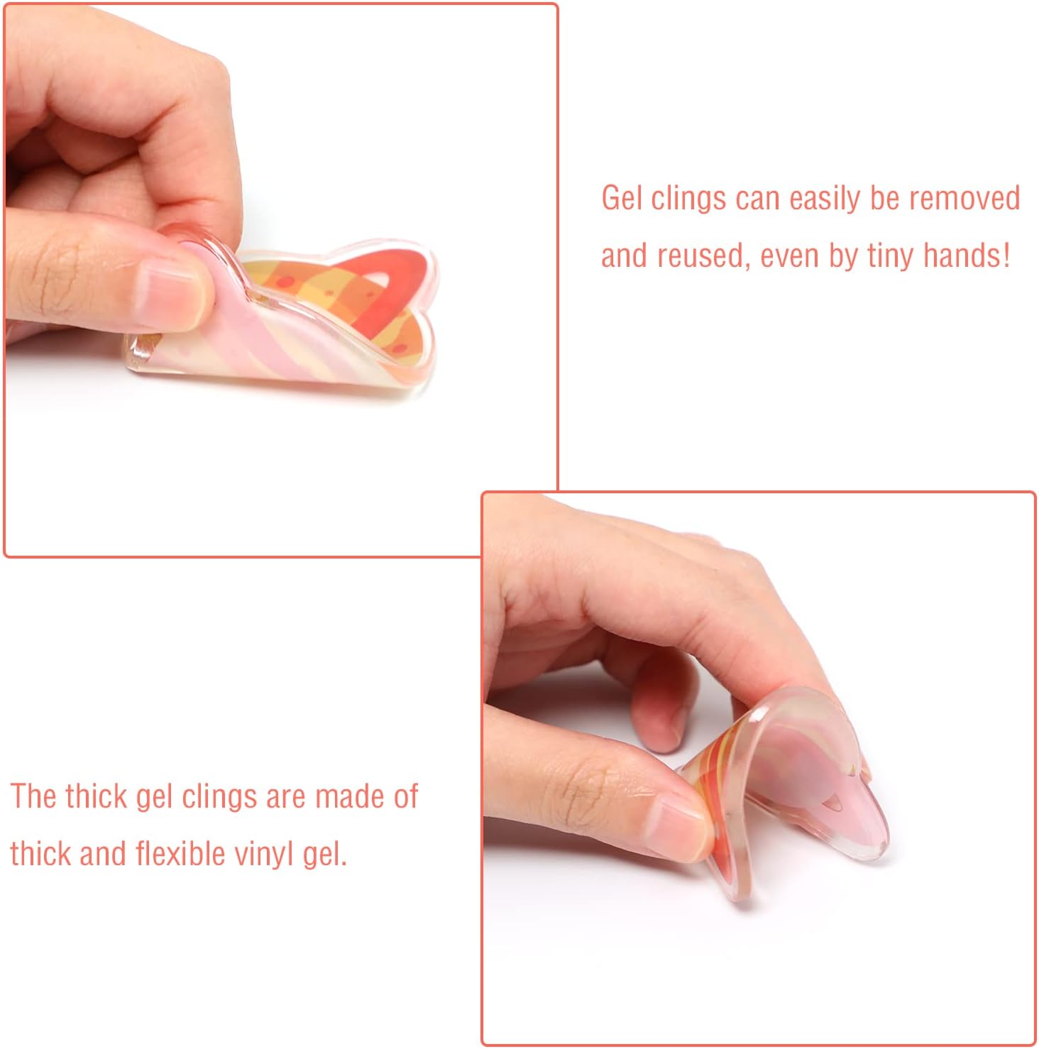 - Note:Outer space thick gel clings are not edible. These thick gel window clings are suitable for children 5 years and older to play, and there is a risk of suffocation. They need to be accompanied by an adult when playing.
