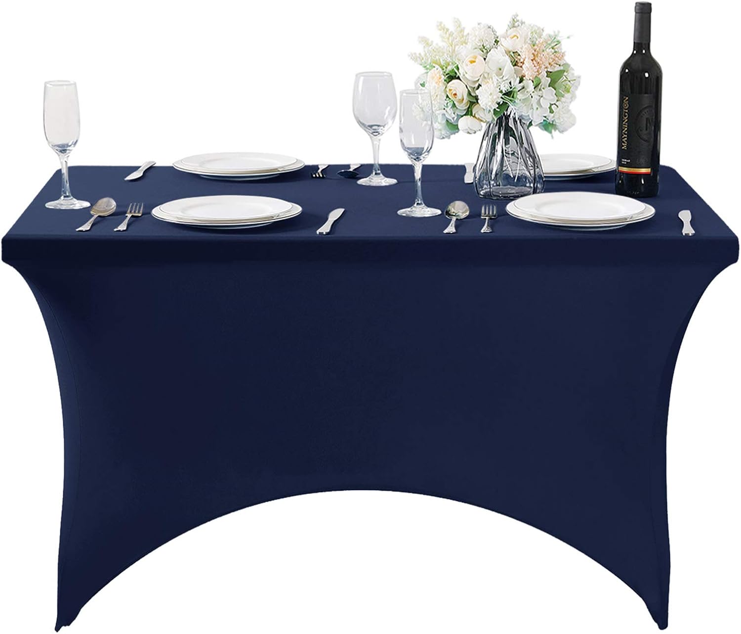 2Pack Spandex Table Cover for 4FT or 6ft or 9ft Table Universal Fitted Stretch Tablecloth for Party, Banquet, Wedding and Events-Navy