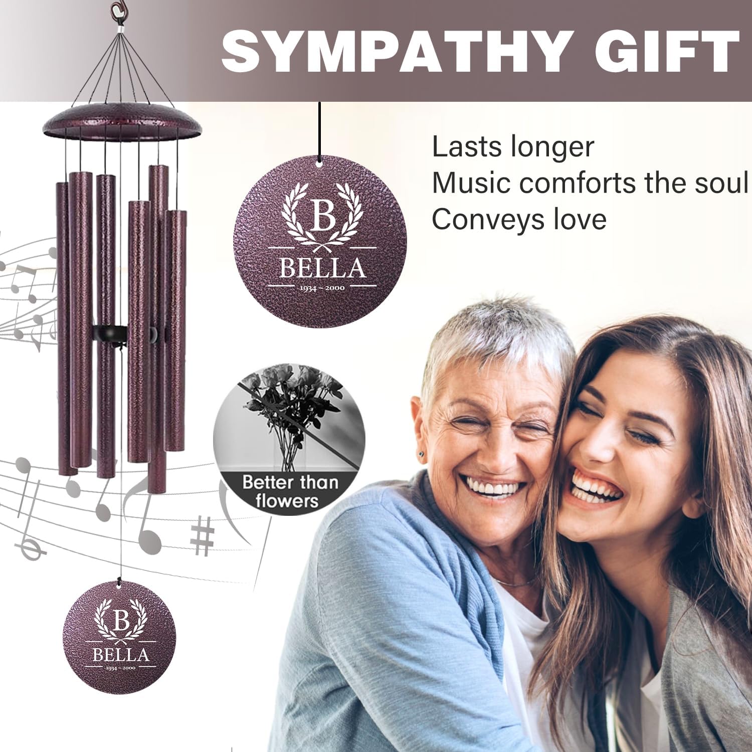 - A BETTER CHOICE THAN FLOWERS: Personalized memorial wind chimes, customized with his/her name and date to keep love in our hearts forever. Our wind chimes are tuned by wind chime experts to crash out beautiful music, a better tribute gift than flowers.