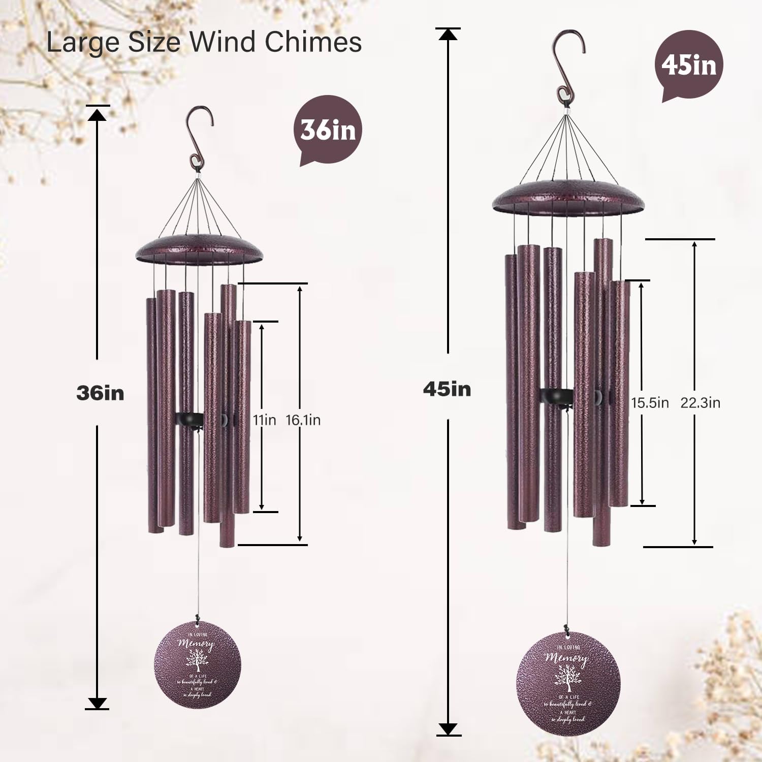 ASTARIN 36" Large Deep Tone Personalized Sympathy Wind Chimes, Memorial Wind Chime for Loss of Mother Father Loved One, Tree of Life Bereavement Gifts Decor Outdoor Patio Garden(Produced in USA)