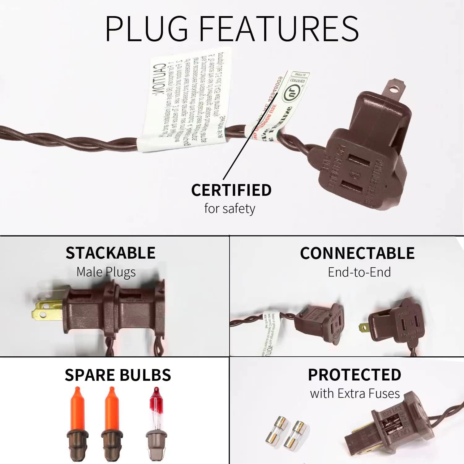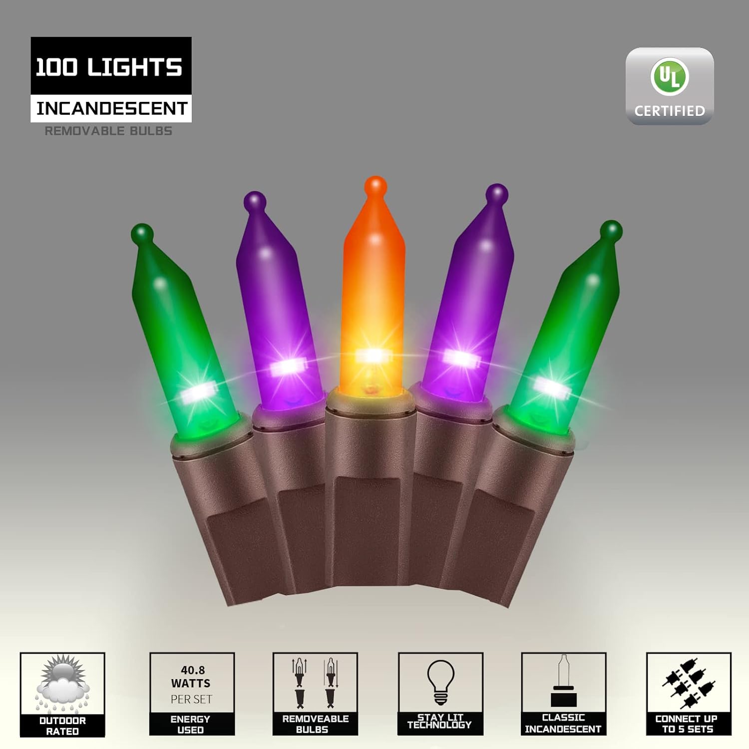 - Safty and Easily: High quality UL certified products ensure the safety of you and your family, Decorate with 100 halloween incandescent mini lights with brown wire will give a soft festive feel to your Halloween.
