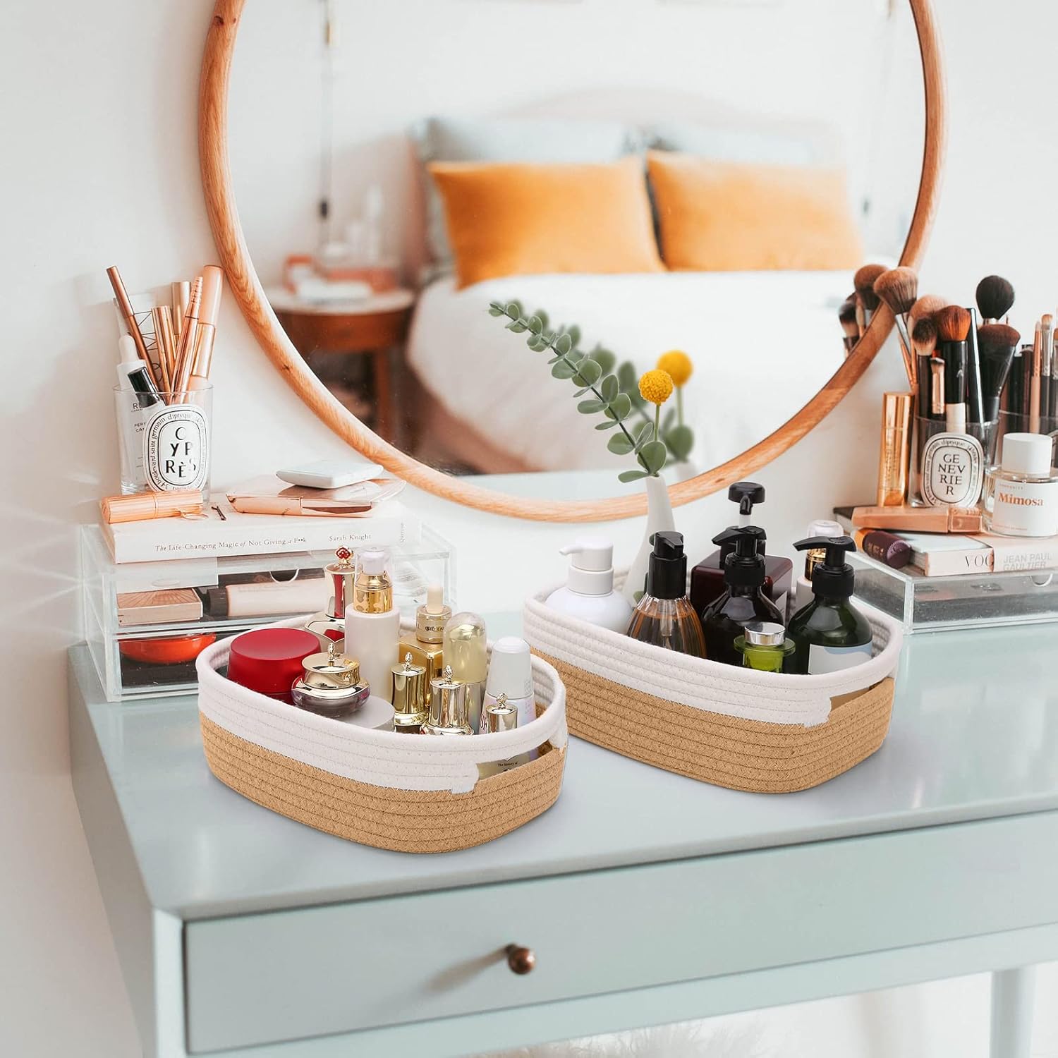 - Attentive Design: This may be the perfect solution if you are looking for an attractive and functional woven cotton rope basket. We put the basket flat in the box to avoid sagging and deformation. The thoughtful design brings convenience and efficiency to your life. ๐NOTE: PLEASE CONFIRM THE SIZE BEFORE PURCHASING