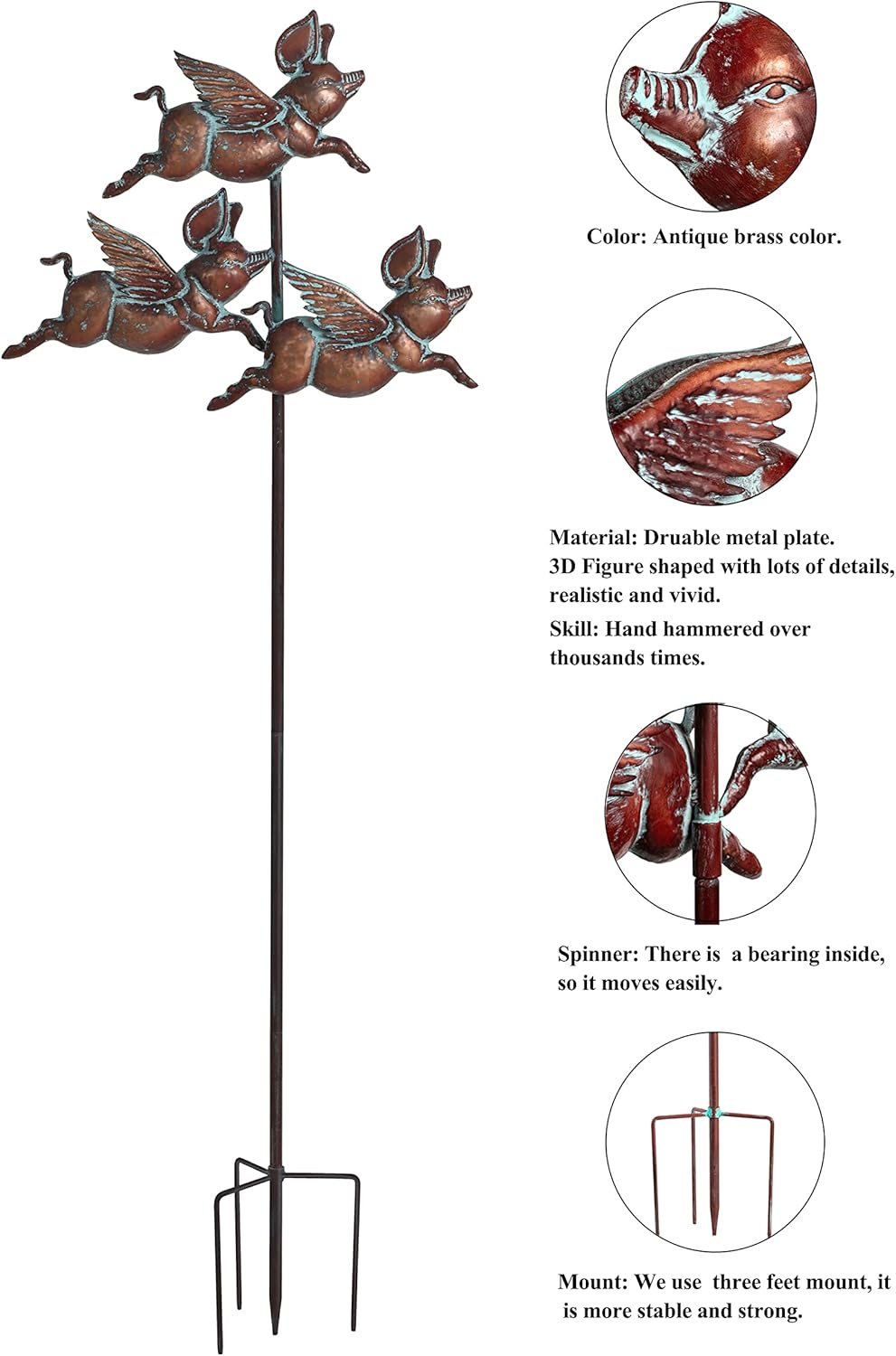 - Product Size: The flying pig wind spinner outdoor garden sculptures decor stands at 90" x 32".