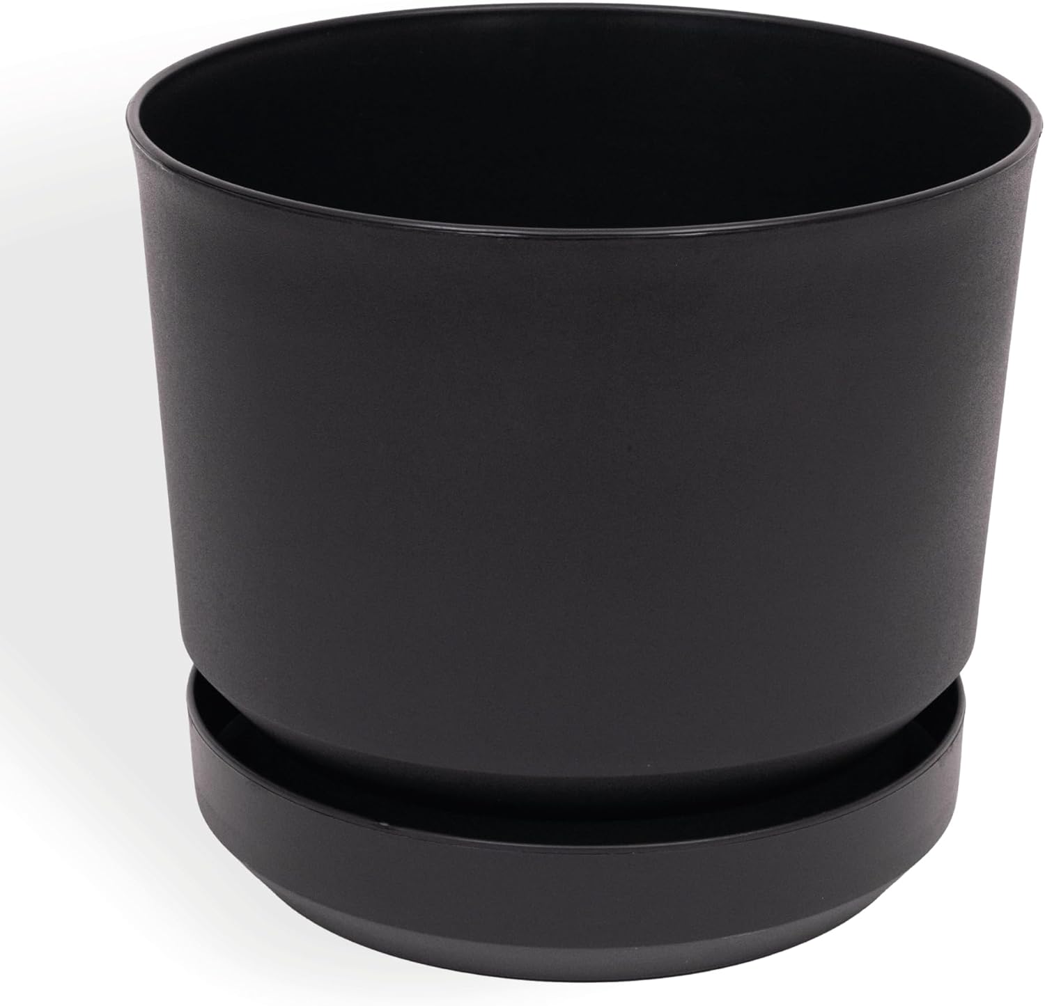 Elly Décor 8 inch Plastic Cylinder Planter Pot with Self-Watering Saucer and Drainage Hole,Lightweight & Extremely Durable, 8"x 8", Black