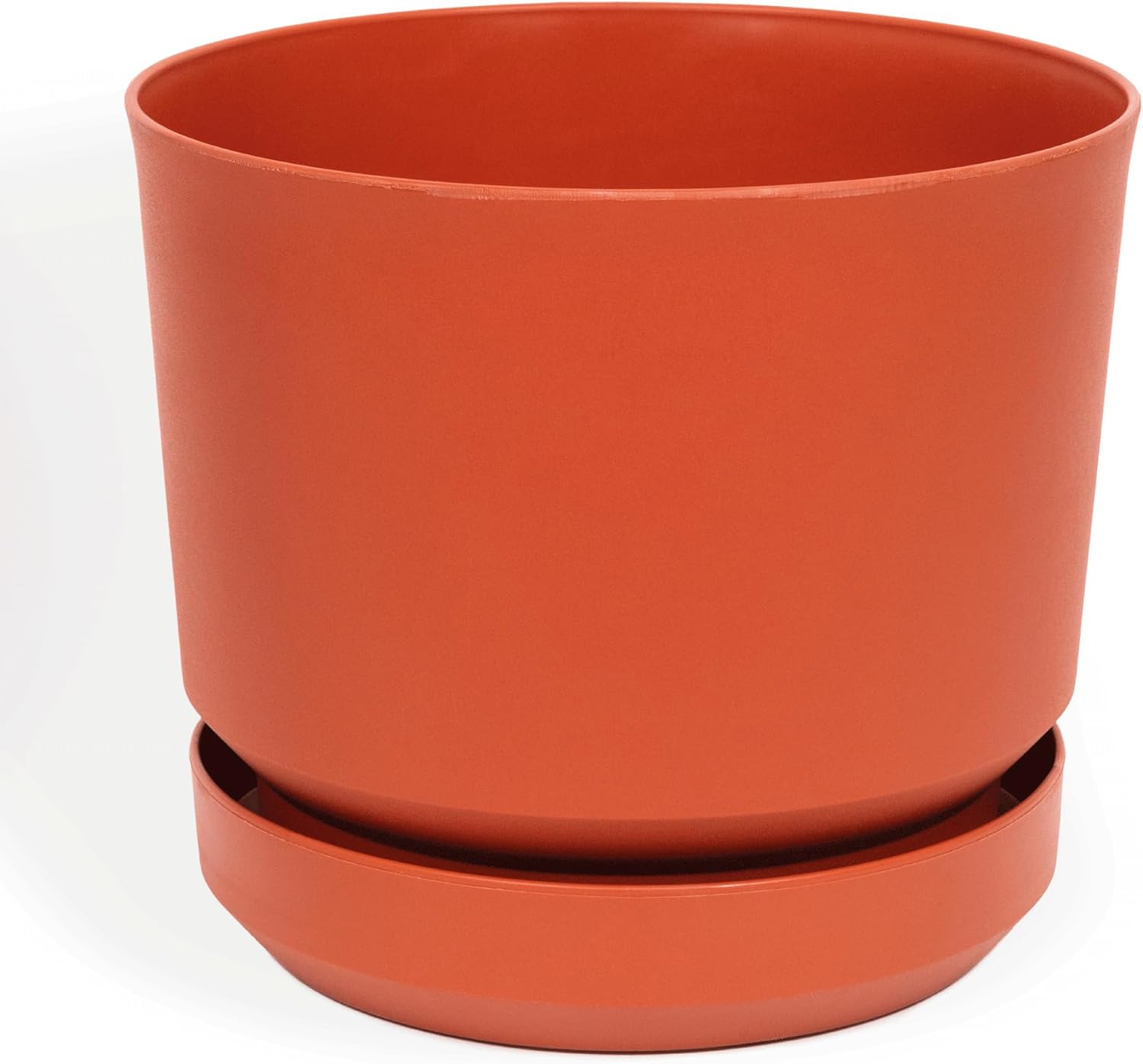 Elly Décor 10 inch Plastic Cylinder Planter Pot with Self-Watering Saucer and Drainage Hole,Lightweight & Extremely Durable, 10"x 10", Terracotta