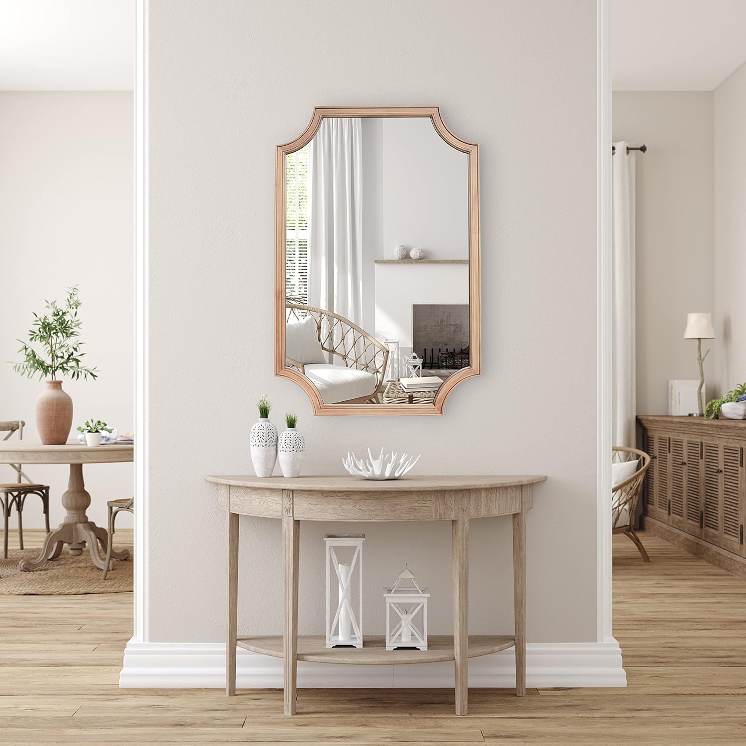 WallBeyond 24" x 36" Full Scalloped Corners Arch Rectangle Wall Mirror with Wood Frame for Entryway, Living Room or Bedroom Home Decor - Light Woodgrain [24" x 36" Natrual]
