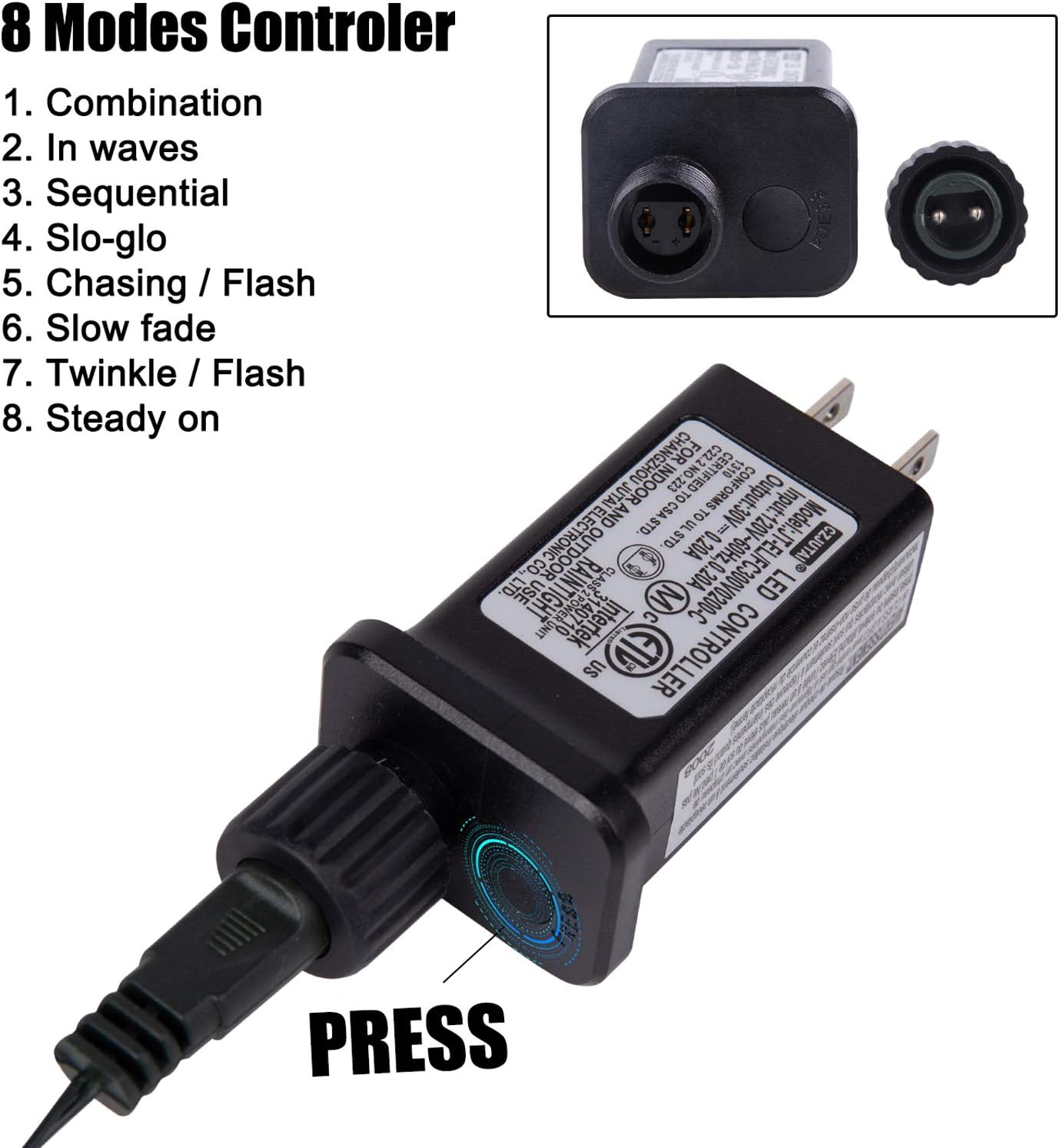 - 8 Lighting Modes: These twinkle lights have 8 fun settings where you can choose various flickers or constant on option. These 360Âş sparkling white lights can not only provide good lighting effects but also bring a more romantic festive atmosphere