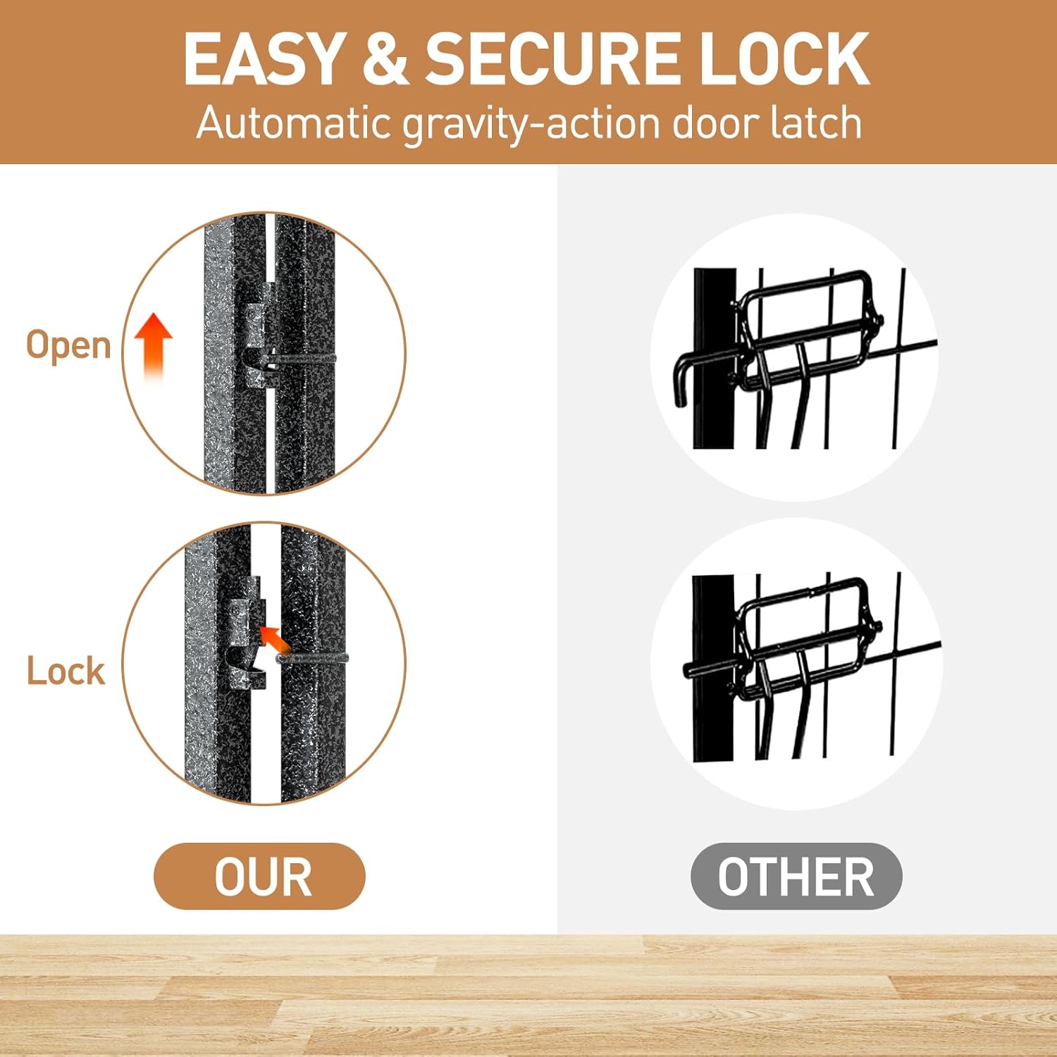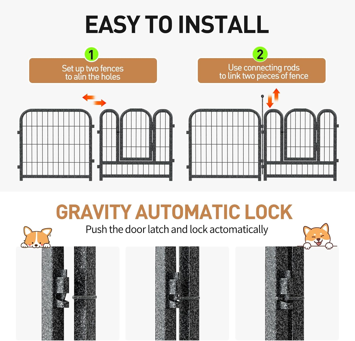 - 【Safety by Design】: The upgraded design of the ground stakes with rounded tops provides protection for your pet's paws, ensuring more robust stability even when the pet is close. The automatic gravity-locking mechanism ensures smooth operation of the door, minimizing the risk of pets unlocking it themselves. All these safety features allow you to truly trust that your pet can move around safely within the enclosure