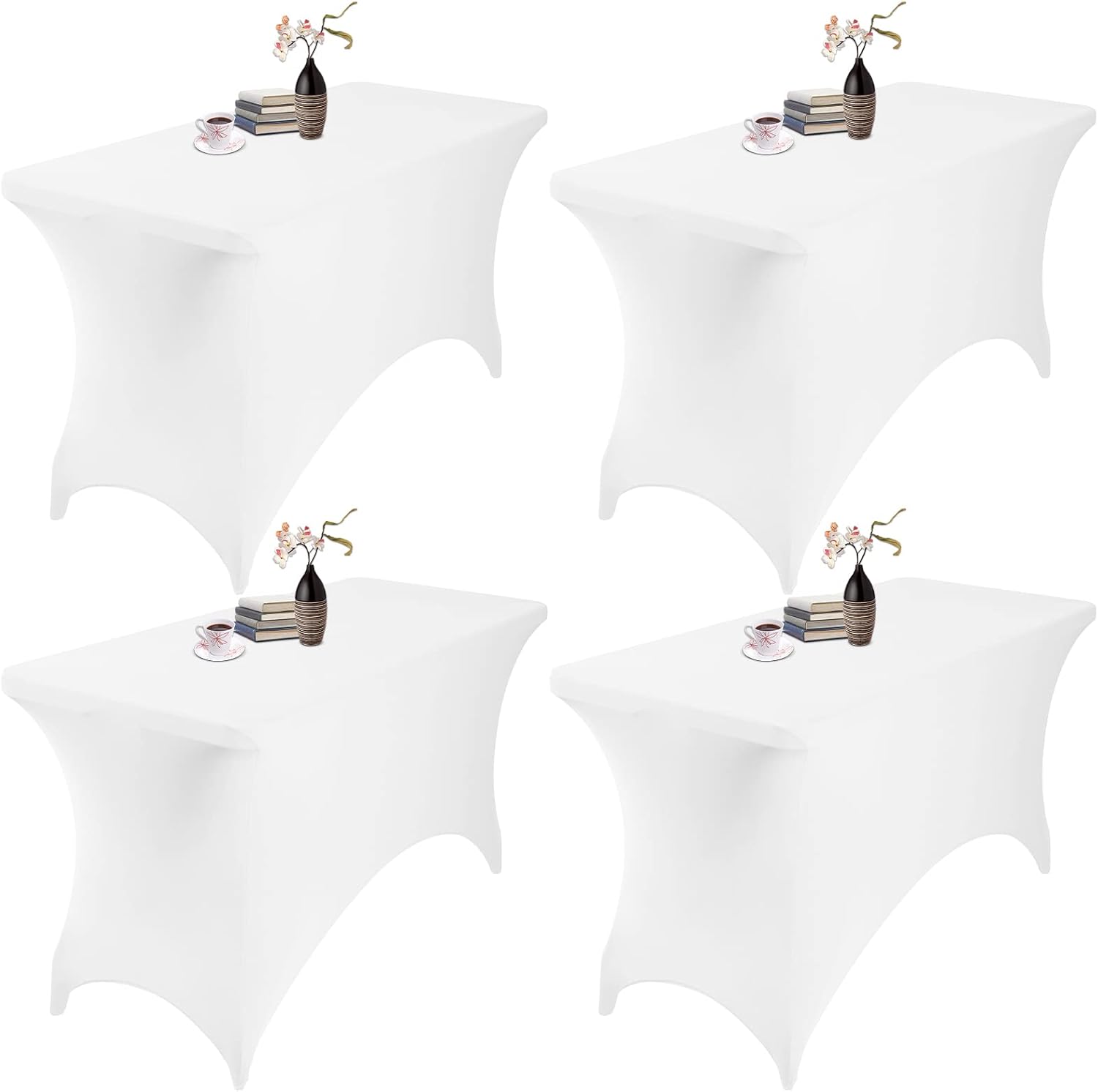 4Pack Spandex Waterproof Table Covers 4ft,Spandex 4ft Waterproof Table Cover for Party,Wedding, Banquet, and Events(White)