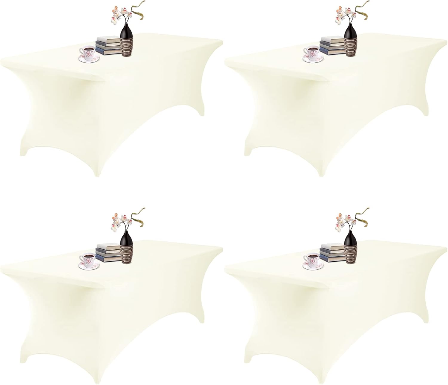 4Pack Spandex Waterproof Table Covers 8ft,Spandex 8ft Waterproof Table Cover for Party,Wedding, Banquet, and Events(Ivory)