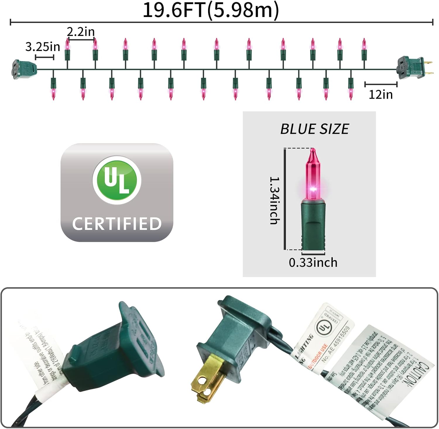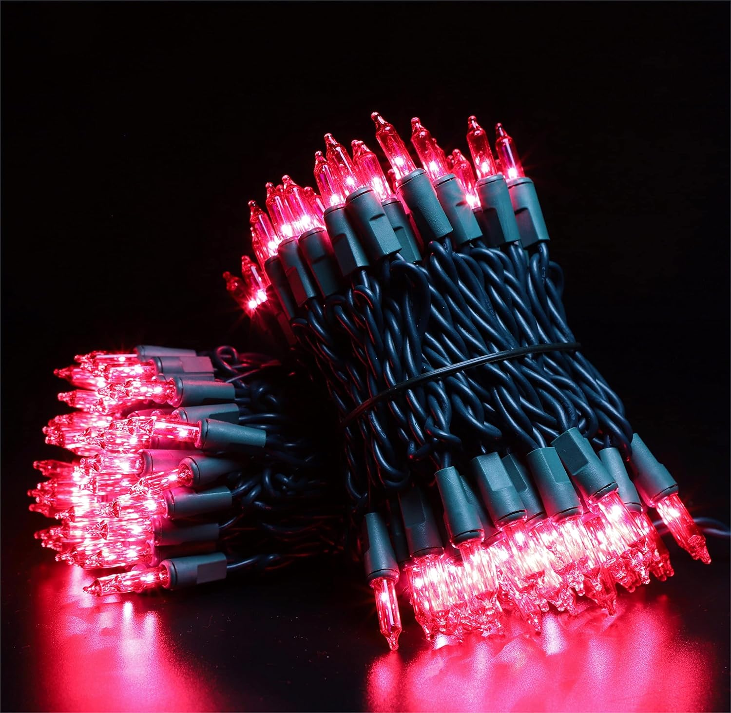 Green Wire,Pink Incandescent Bulb 100 Mini String Lights for Indoor Christmas Tree Garland Birthday Wedding Party Festival Decoration