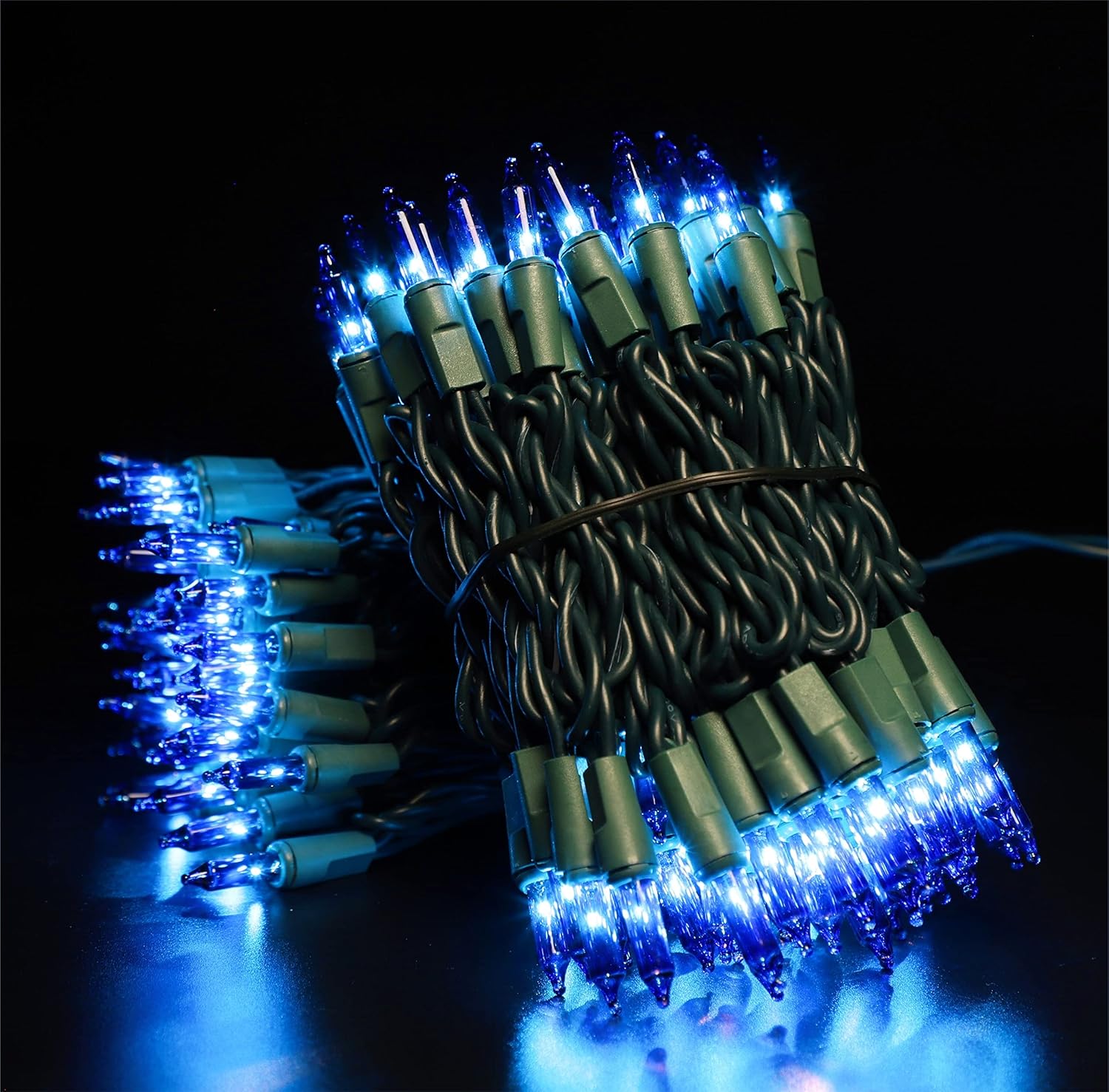 Green Wire,Blue Incandescent Bulb 100 Mini String Lights for Indoor Christmas Tree Garland Birthday Wedding Party Festival Decoration