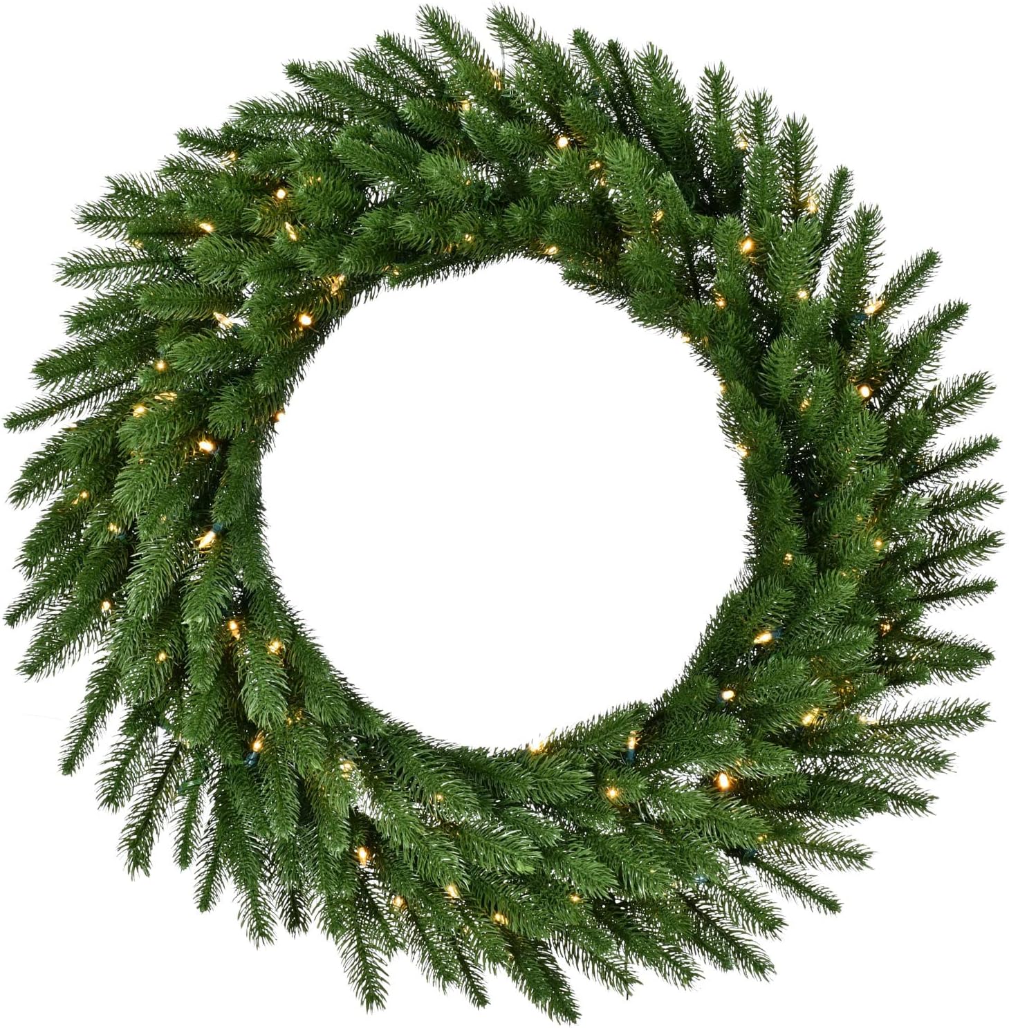 Fraser Hill Farm 36-in. Green Fir Wreath Warm White LED Lights | Battery Operated | Festive Christmas Holiday Decorations | Indoor Hanging Decor for Doors, Fireplace Mantels | FFGF036WR-5GR