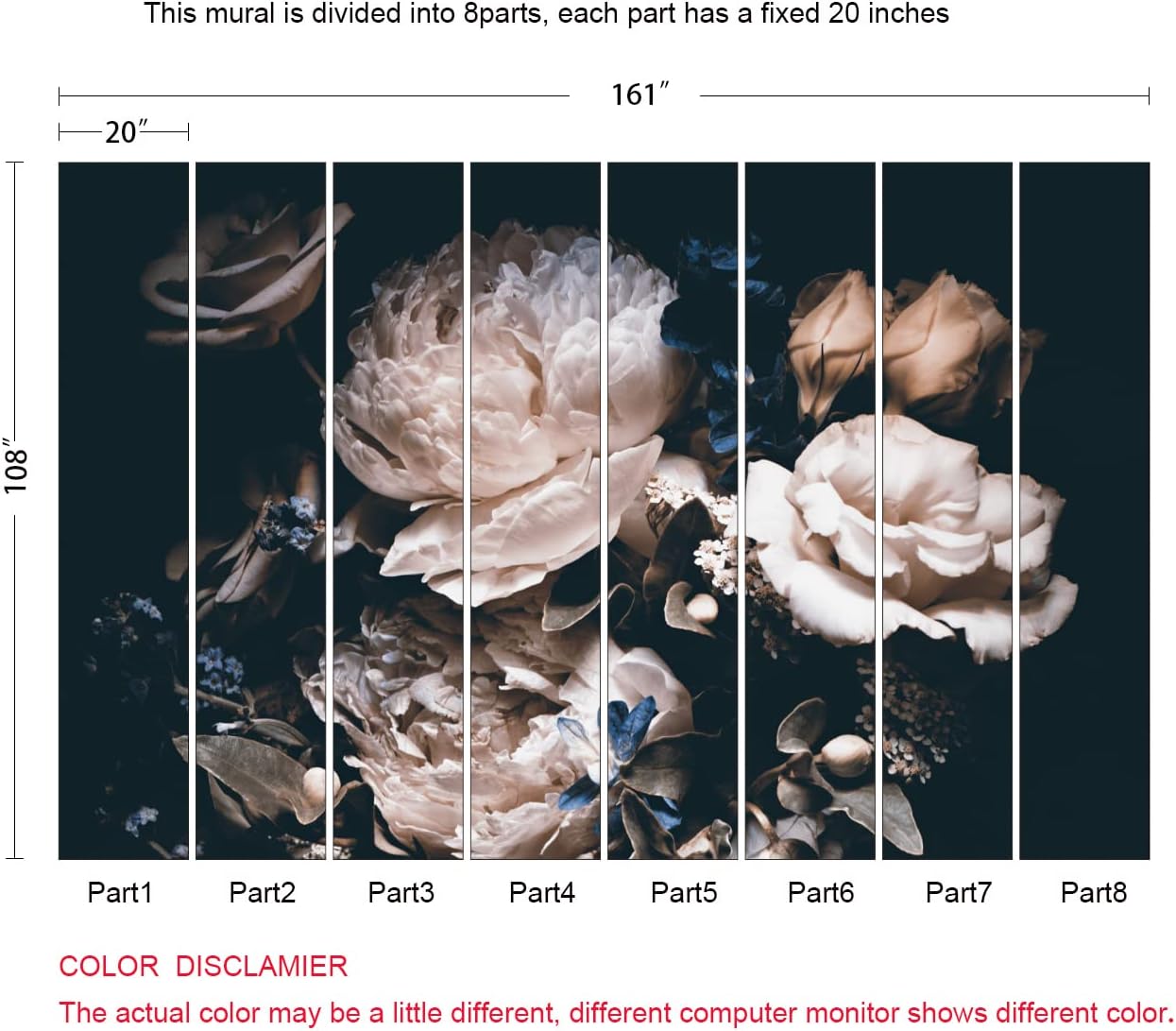 - Dimension:Approx. 161"x108" (Width x Height). This mural wallpaper is cut into 8 strips for easy installation.