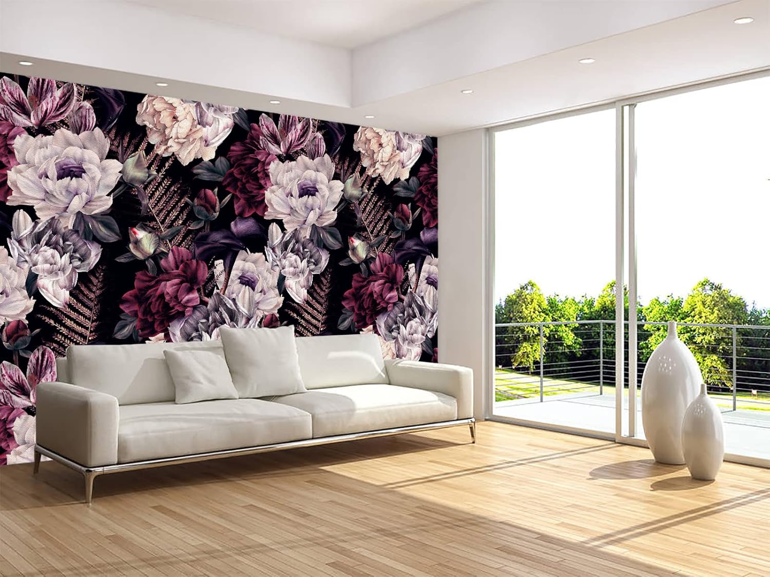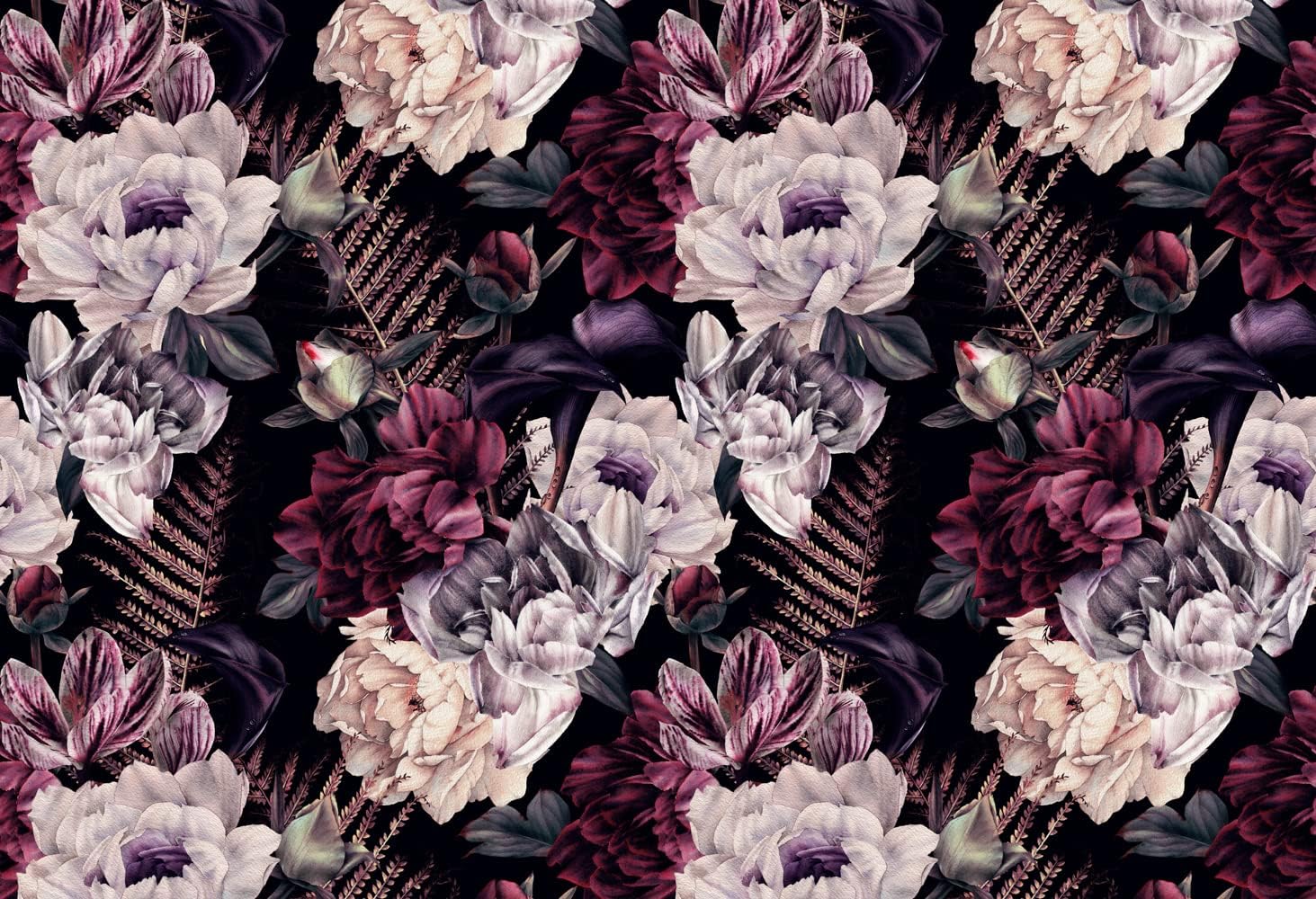 Floral Wallpaper Watercolor Dark Peony Flowers Mural Wallpaper for Bedroom Living Room (Not Peel n' Stick)