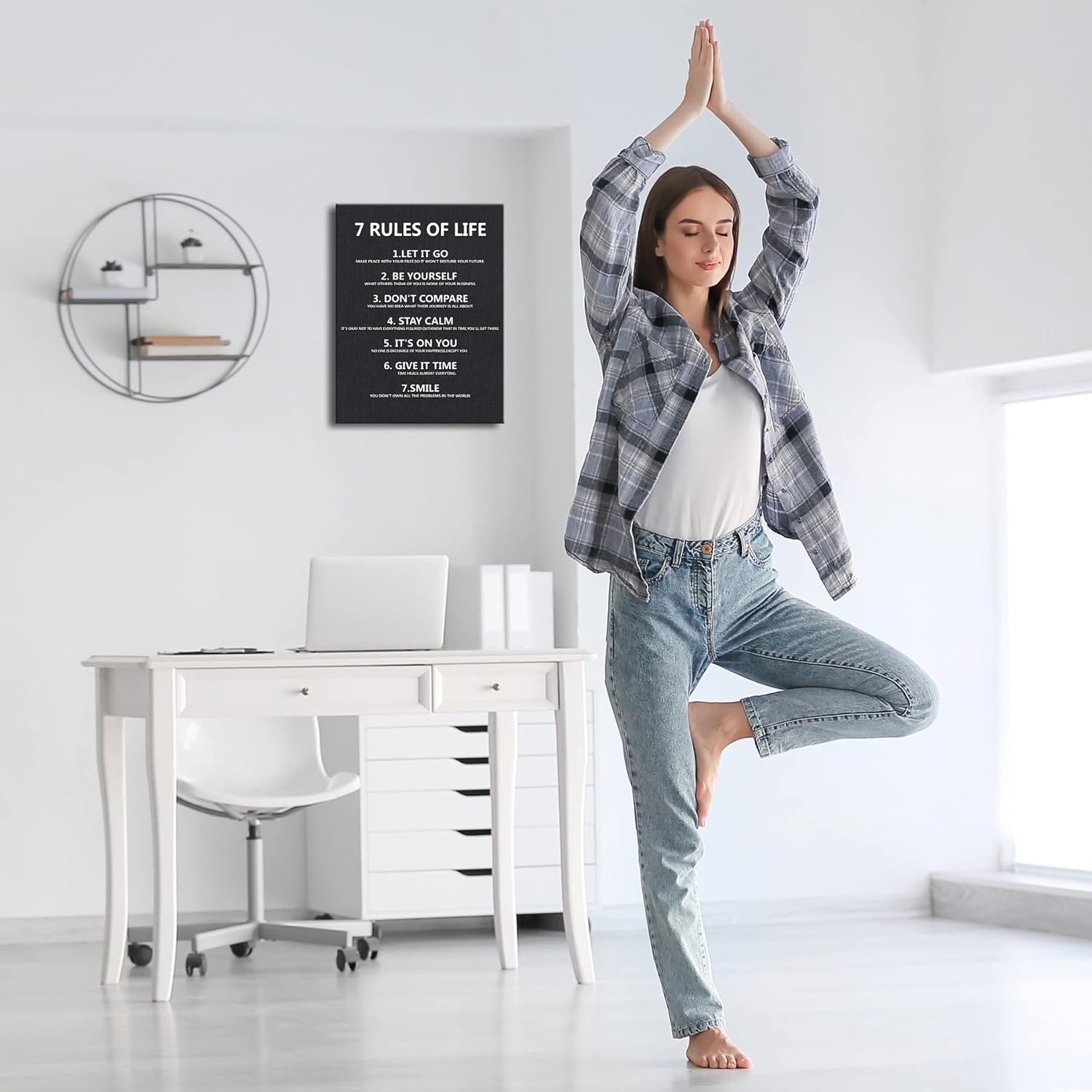 7 Rules of Life Wall Art Motivational Inspirational Poster Printed on Canvas Wall Decor for Living Room or Office Canvas Prints For Bedroom or Home Art Decoration Positive Wall Art for Office Ready to