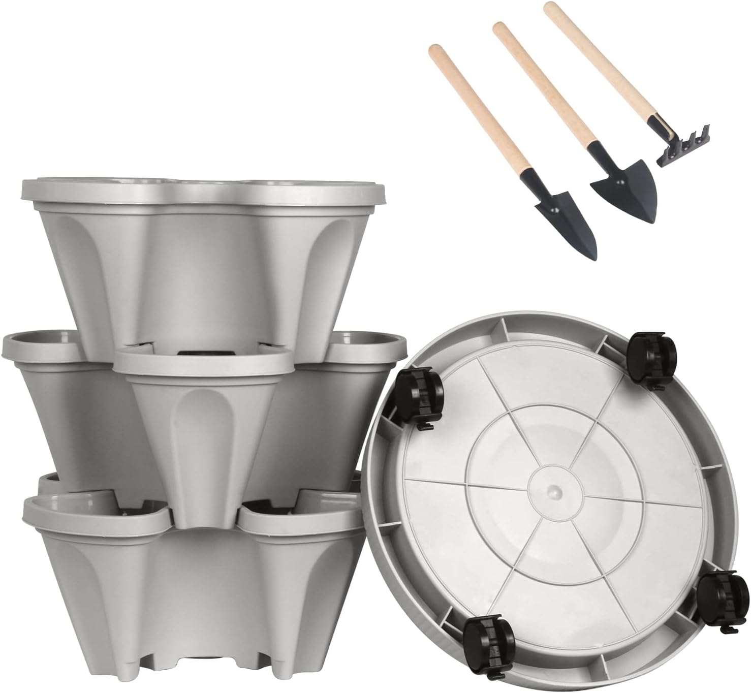 DUNCHATY Stackable Planter, Vertical Garden Planter with Wheels and Tools, Self Watering Strawberry Planter Indoor/Outdoor 3 Tier Herb Planter Pots for Growing Vegetables and Succulents,Gray