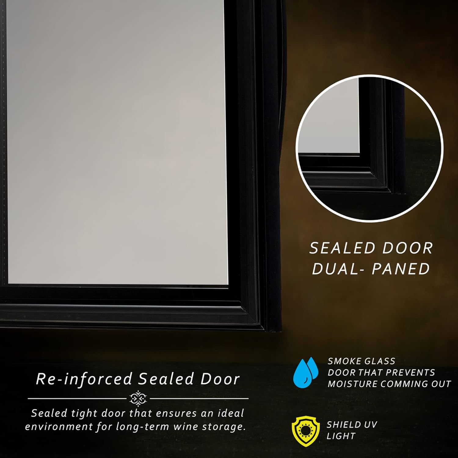 - SILENT PERFORMANCE: Experience the ultra-quiet operation of our wine fridge - small. Featuring contoured and polished chrome wine racks, a glass door with airtight seal, and a stainless steel handle, this wine cooler is perfect for your home wine cellar.