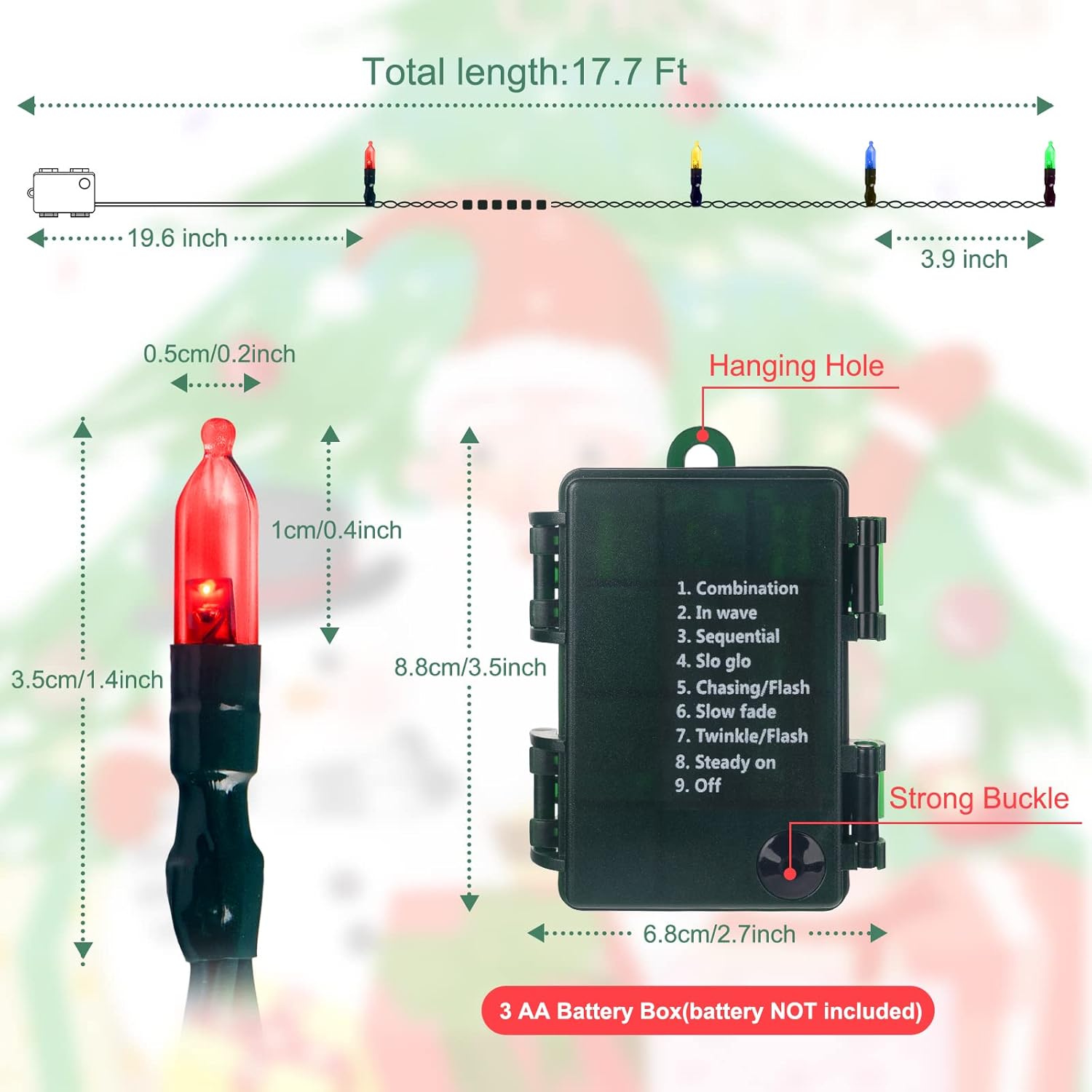 - Special Feature : 2Pack 50 LED Battery Operated Christmas Lights 17.7 FT, Multicolor Waterproof Mini String Lights with 8 Lighting Modes,Timer, Remote Control, for Tree, Christmas Decoration, Outdoor, Indoor 2Pack 50 LED Battery Operated Christmas Lights 17.7 FT, Multicolor Waterproof Mini String Lights with 8 Lighting Modes,Timer, Remote Control, for Tree, Christmas Decorati… See more