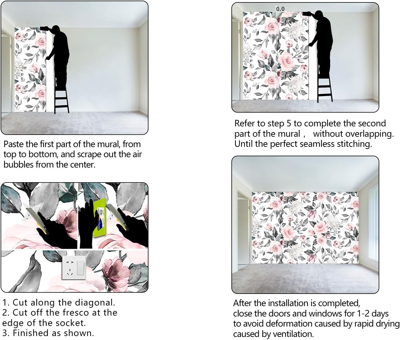 - It's easy to install: at the bottom of each mural we have a numbered sequence, You can refer to the instructions we provided and the main picture 6-7,just match the numbers and you'll be amazed!