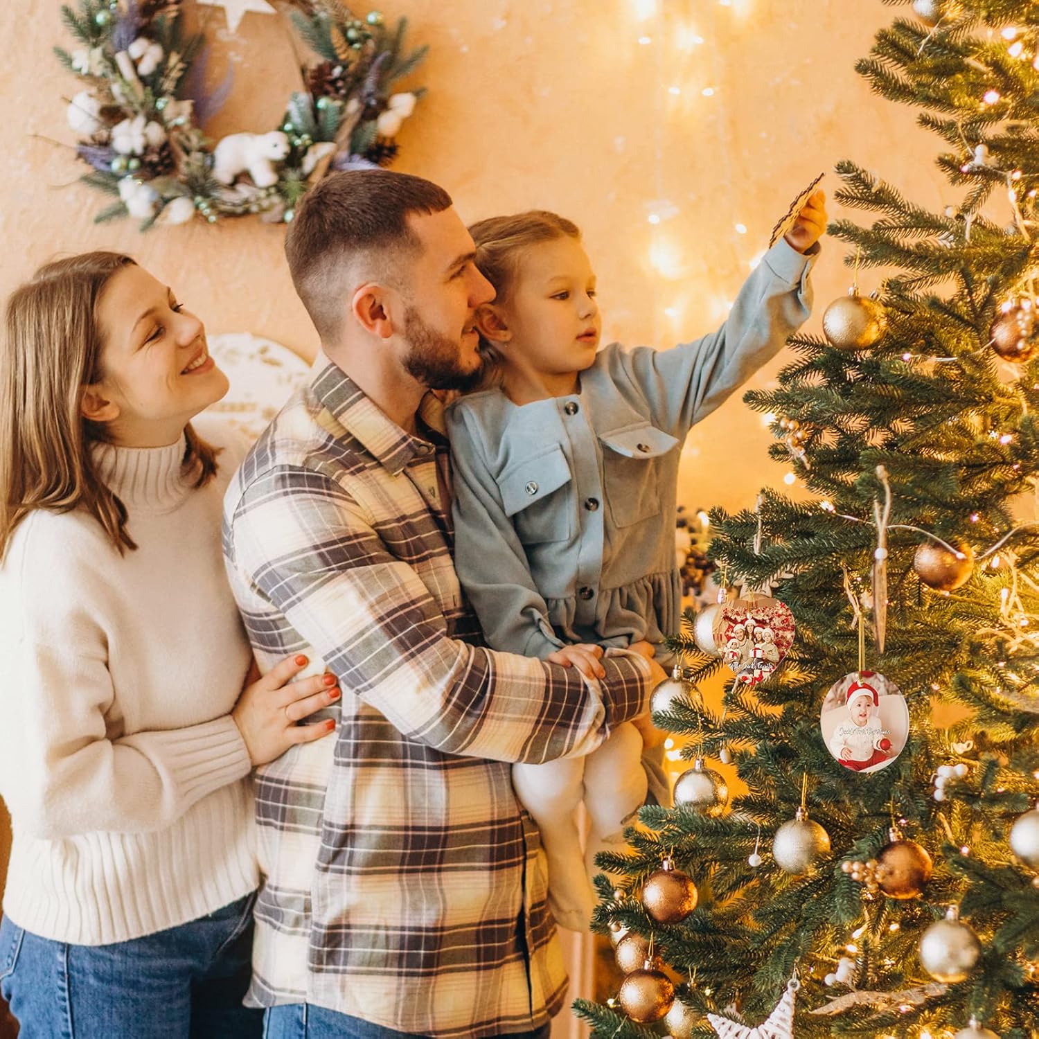 - HIGH QUALITY CERAMIC - The custom ornament is made of high-quality ceramic, which is about 3'' & easy to carry or give gift. Different from the wooden ornaments, its printing is clearer & looks more high-end. Feature bright, high-definition printing to keep your pictures from fading. This custom photo christmas ornament can be kept for a long time to remember your unforgettable Christmas forever.