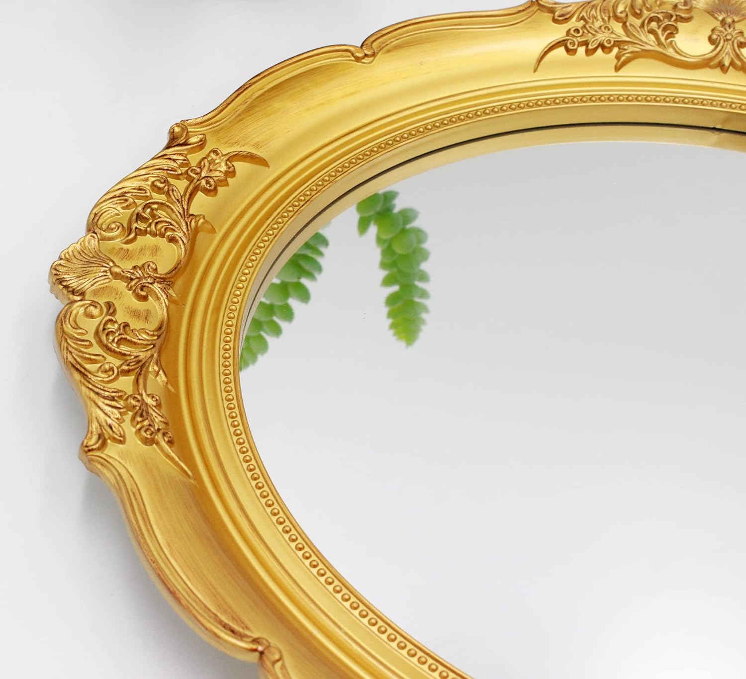 - TIMELESS STYLE: This elegant Gold oval framed wall mirror lends a touch of vintage flair to any living space with its graceful curves and antique inspired design.