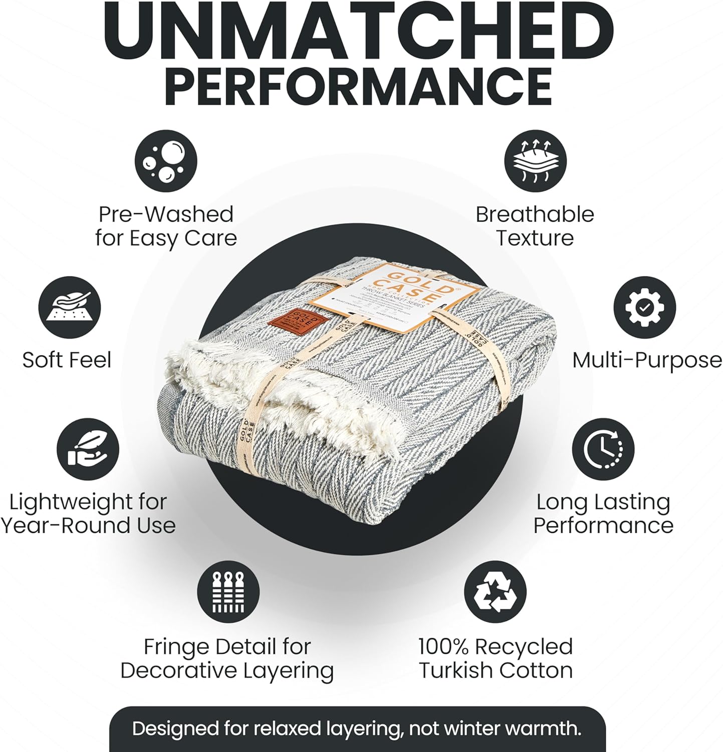 Gold Case Throw Blanket for Couch – 100% Recycled Turkish Cotton Blankets & Throws – Elegant Decorative Throw Blankets for Living Room Sofa – Woven Throws for Couch – Vintage Grey– 60x80