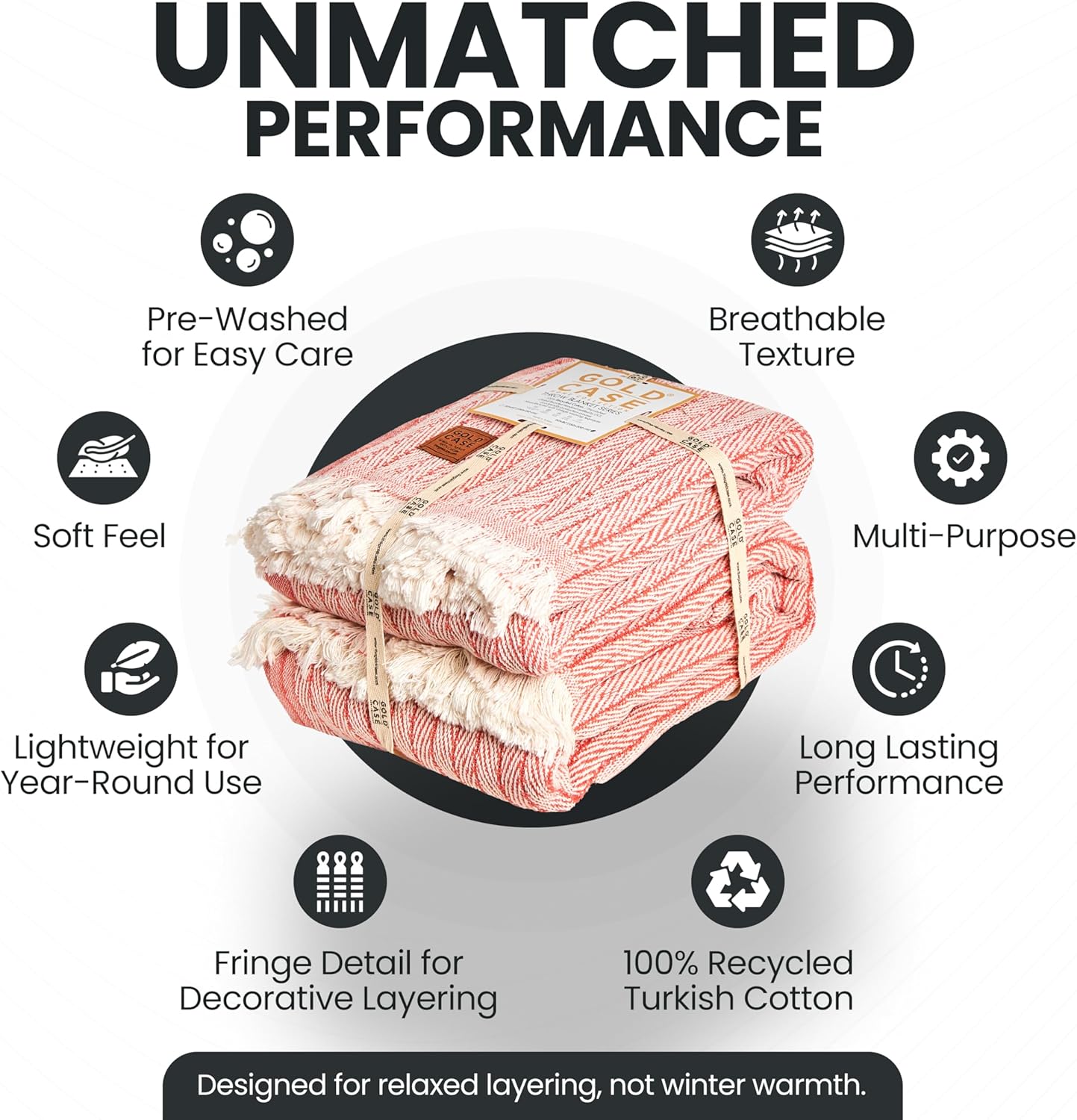 Gold Case Throw Blanket for Couch – 100% Recycled Turkish Cotton Blankets – Elegant Decorative Throw Blankets for Living Room Sofa – Woven Throws for Couch – Vintage Orange – 50x60 (Set of 2)