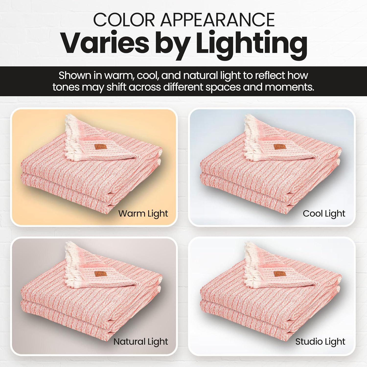 - LIGHTWEIGHT LAYERS FOR RELAXED MOMENTS: Woven from 100% recycled Turkish cotton, this breathable and cute throw blanket adds a soft, textured touch to your space; made for layering on the couch, tossing over your shoulders, or adding a laid-back look to your decor