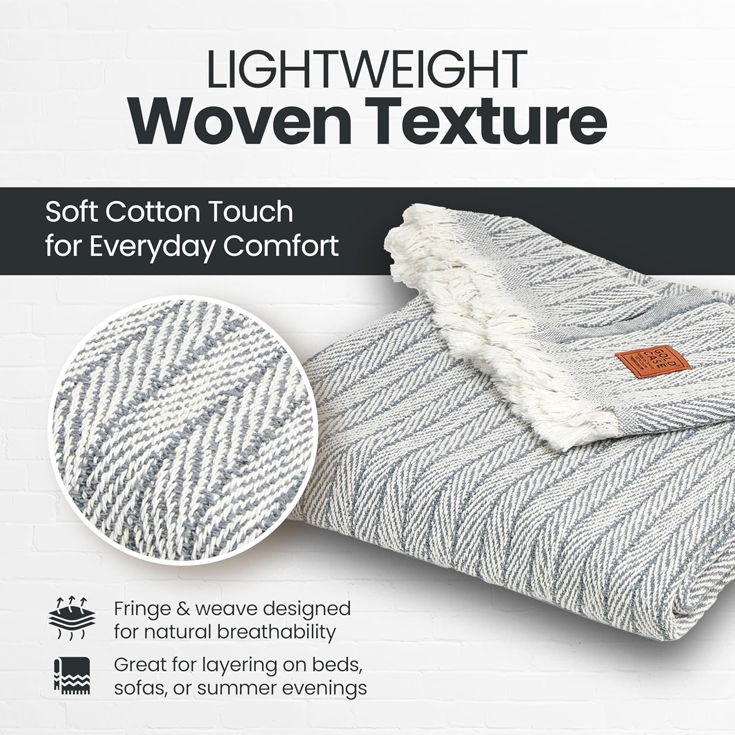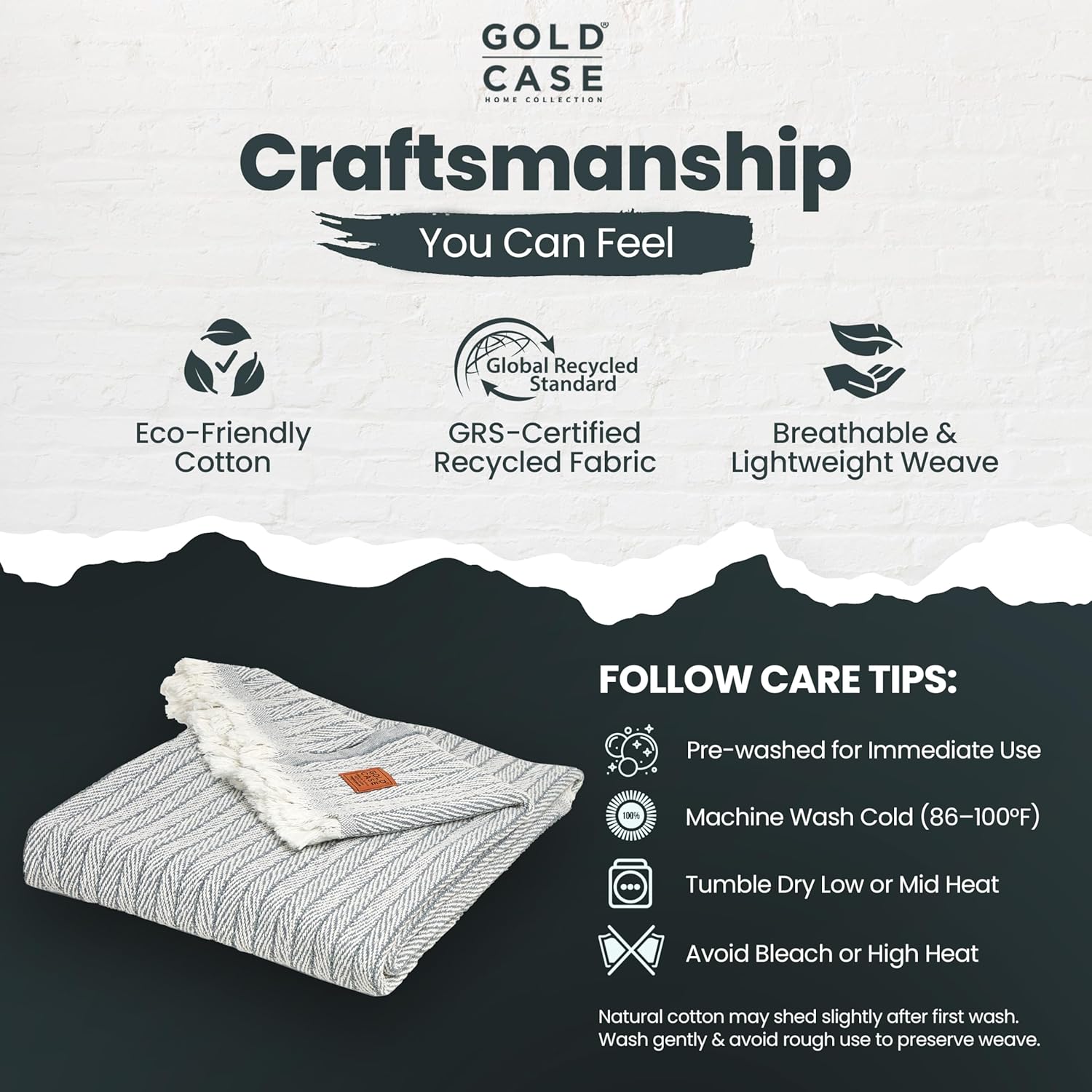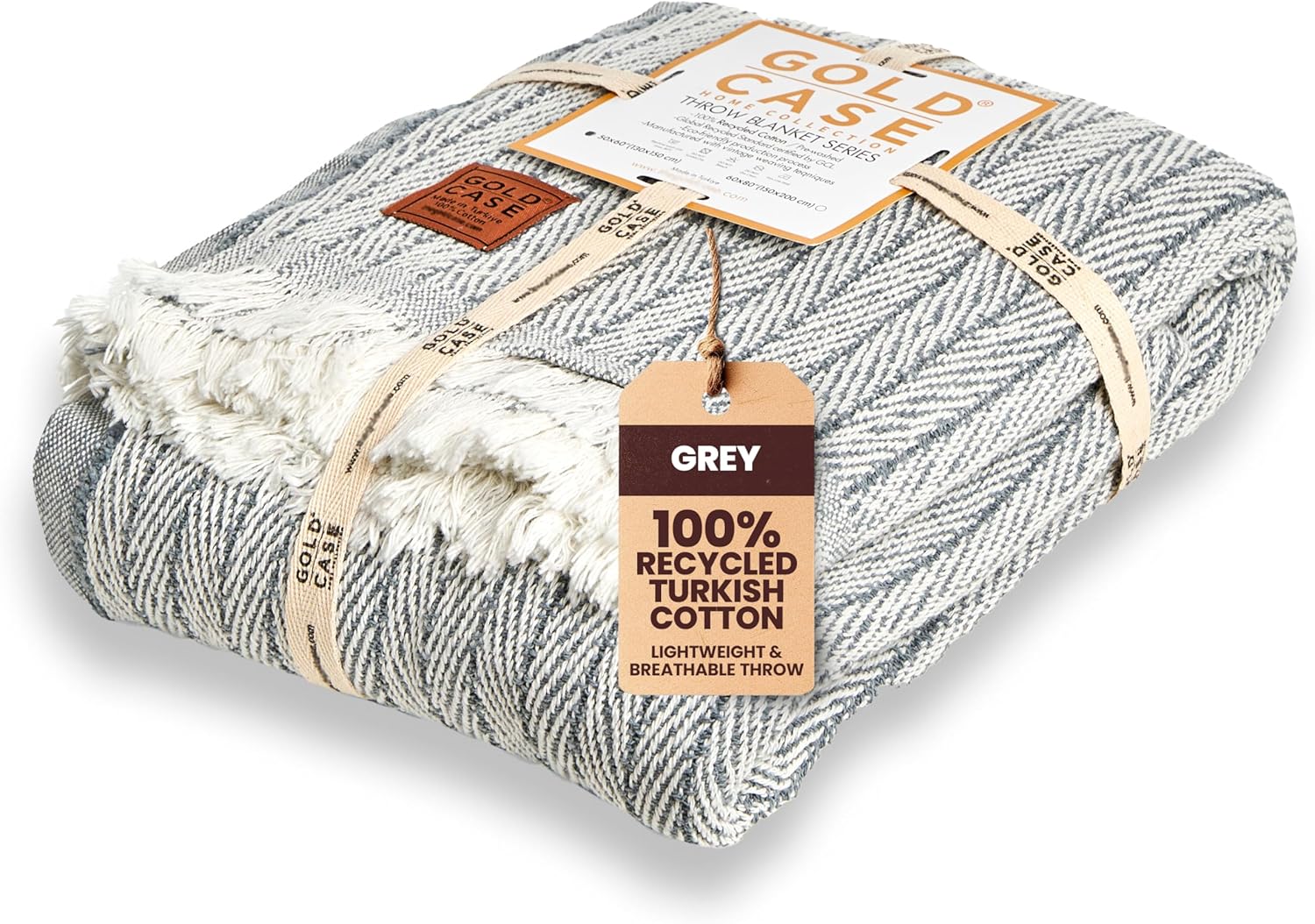 Gold Case Throw Blanket for Couch – 100% Recycled Turkish Cotton Blankets & Throws – Elegant Decorative Throw Blankets for Living Room Sofa – Woven Throws for Couch – Vintage Grey – 50x60